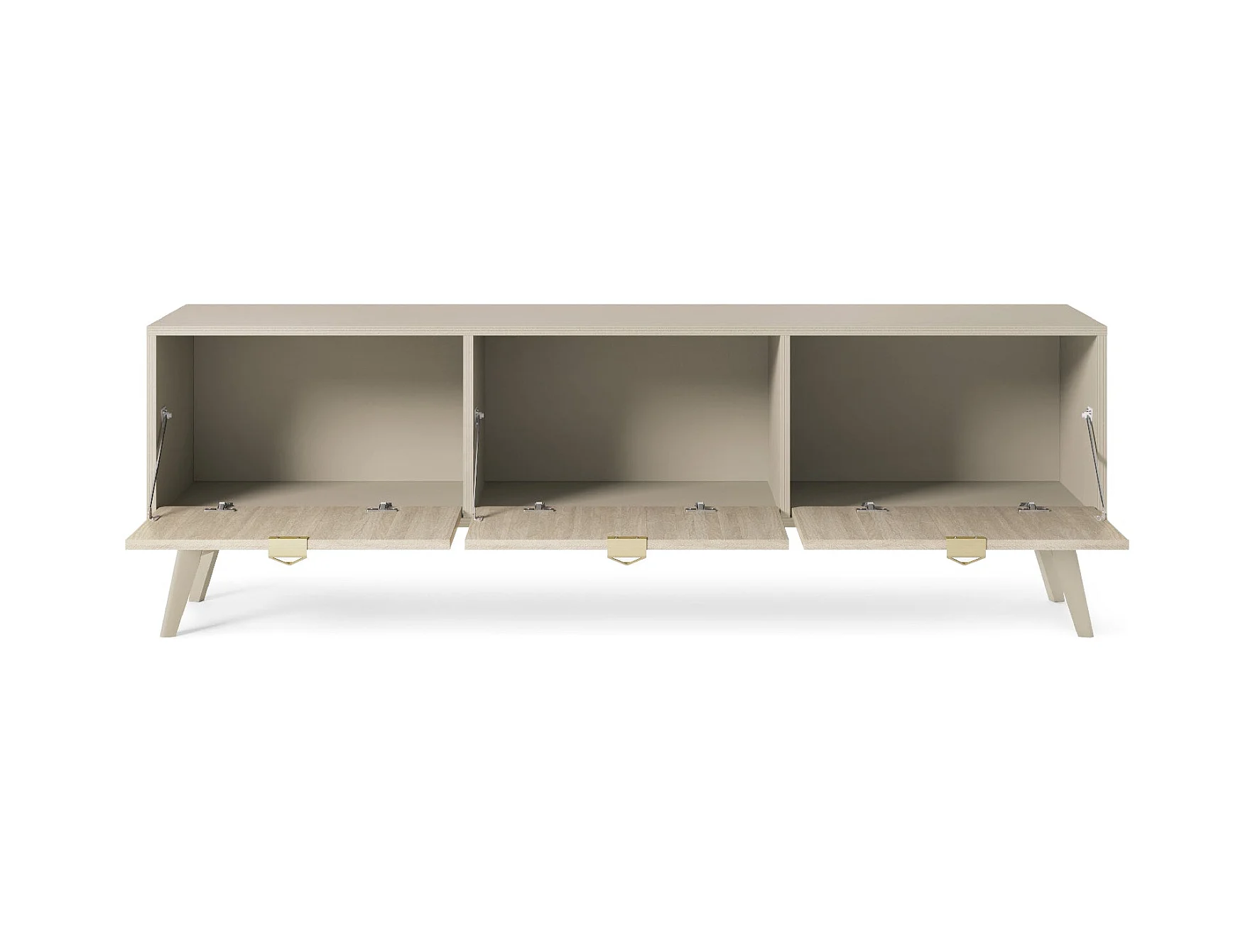 Meuble TV 3 portes avec pieds en métal doré 168x56 cm