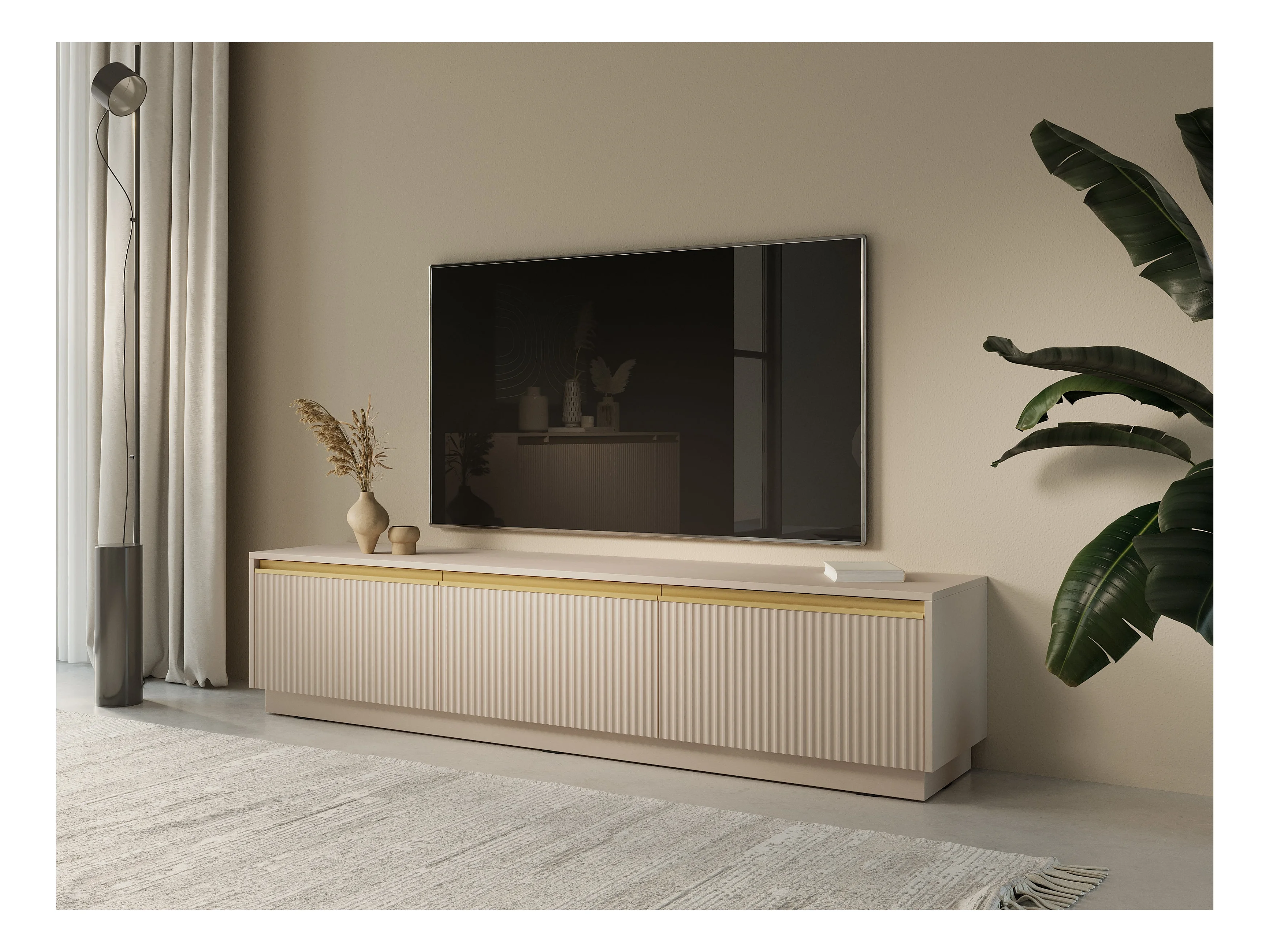 Meuble TV 3 portes en bois stratifié beige 180x42 cm