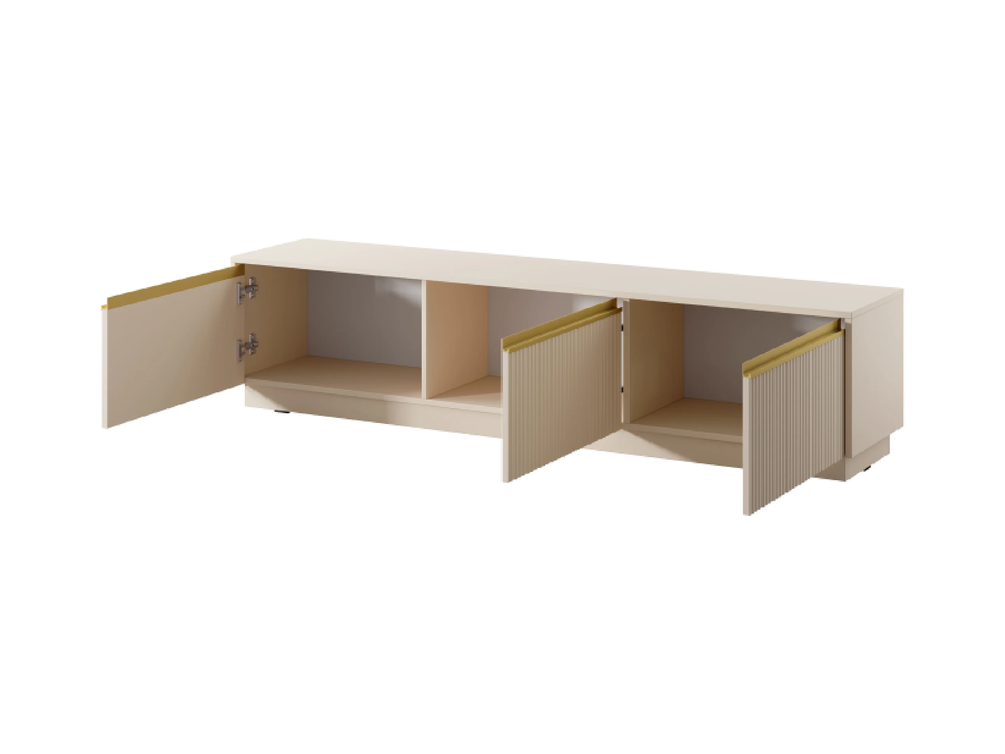 Meuble TV 3 portes avec pieds en métal doré 168x56 cm