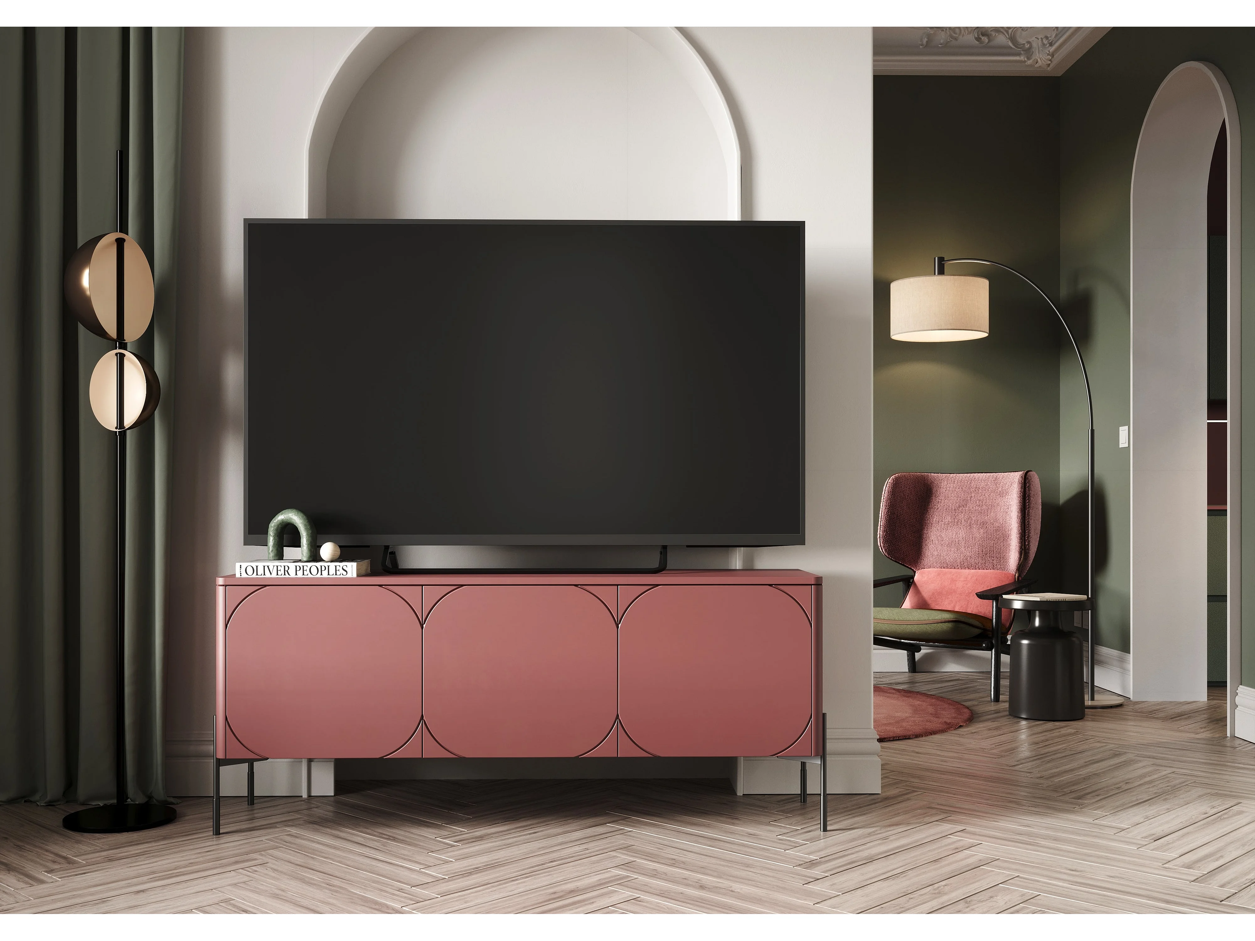 Meuble TV 3 portes pieds en métal bordeaux 154x65 cm