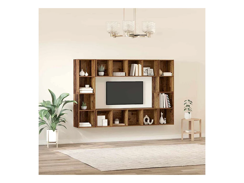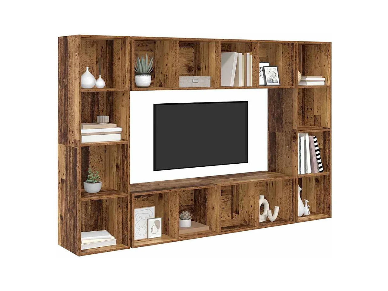 Meuble TV 4 pièces Marron 37 x 37 x 142.5 cm Bois d'ingénierie