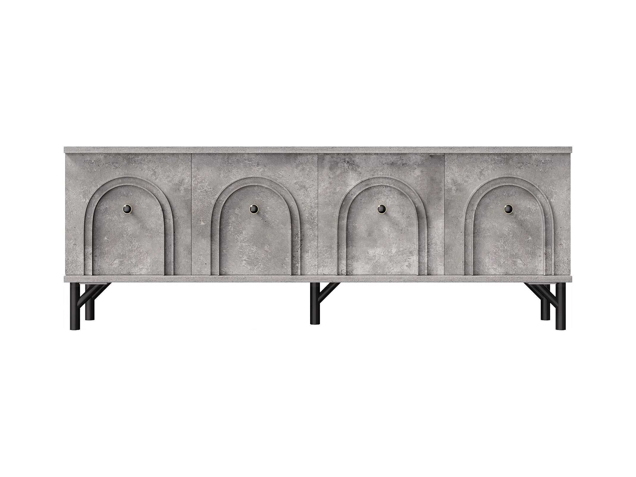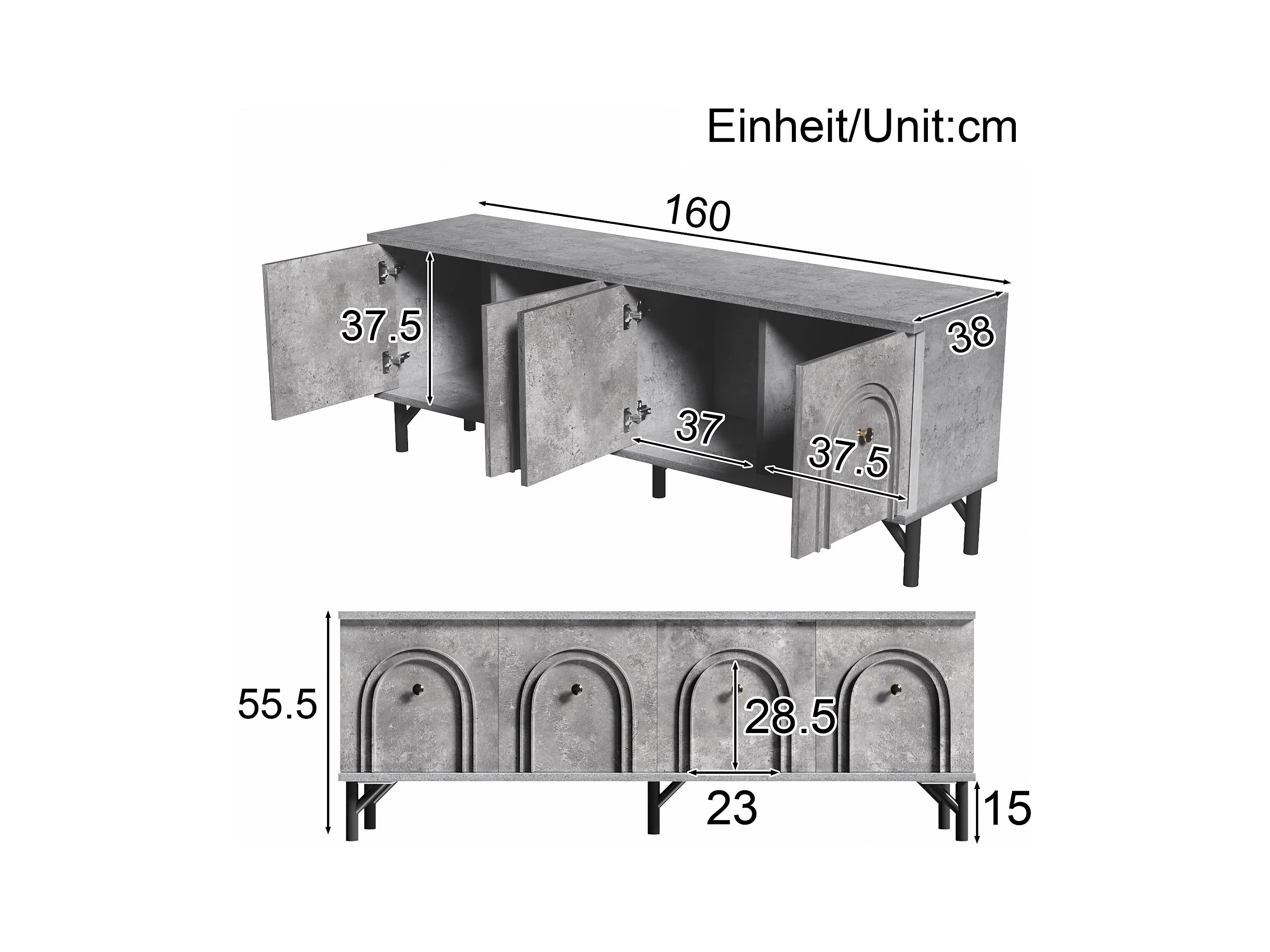 Meuble TV 4 portes, design moderne, avec charnières Soft-Close, Gris, Matériau MDF (160x38x55.5cm)