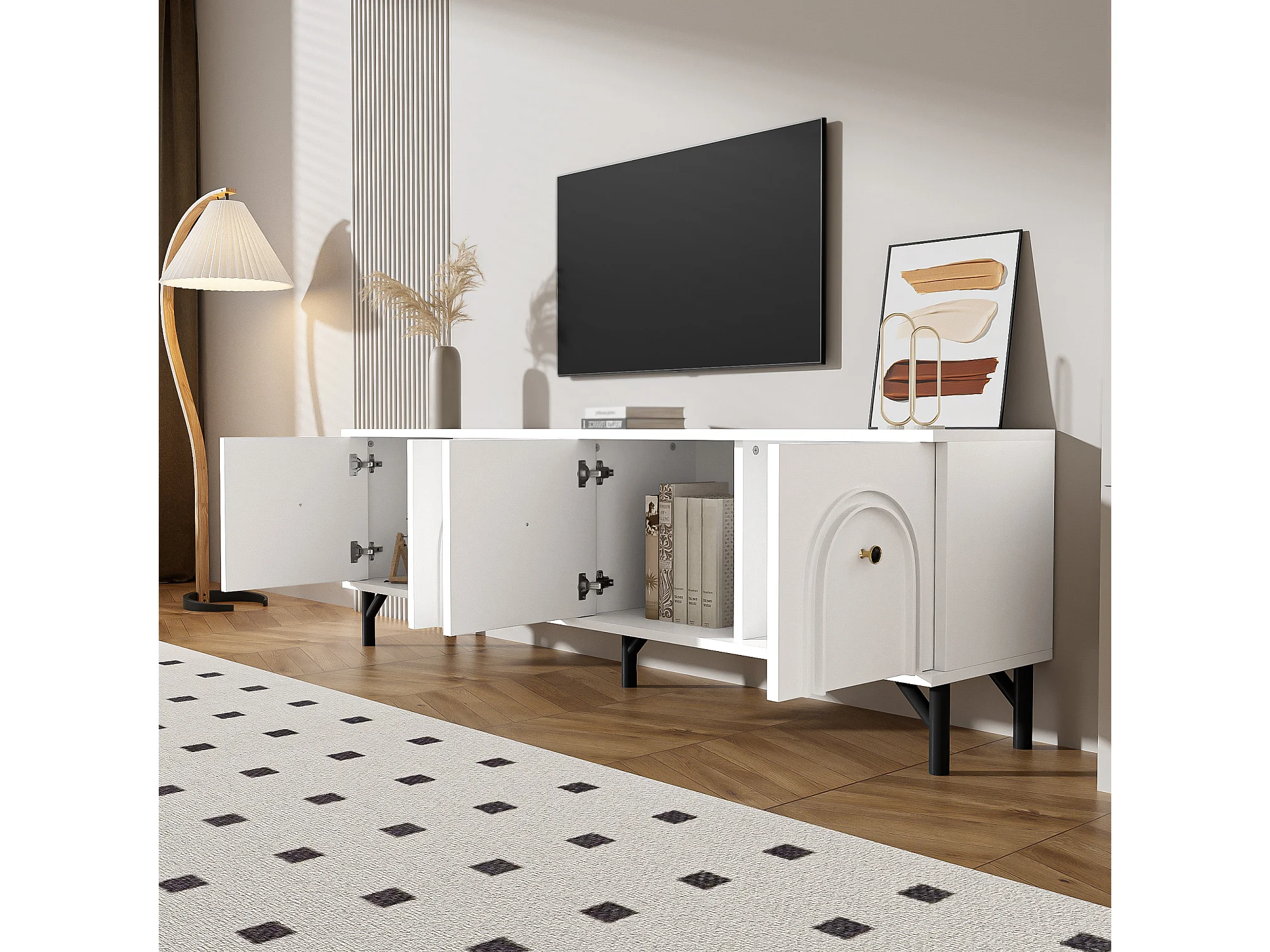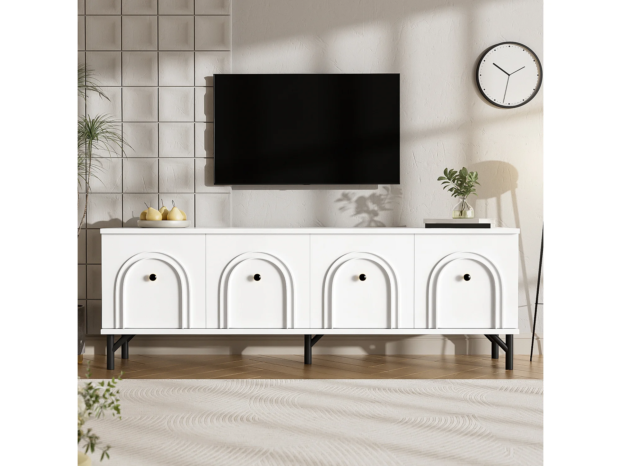 Meuble TV blanc, style minimaliste, avec 4 pieds stables, pour téléviseurs jusqu'à 65 pouces, matériau MDF (160x40x40cm)