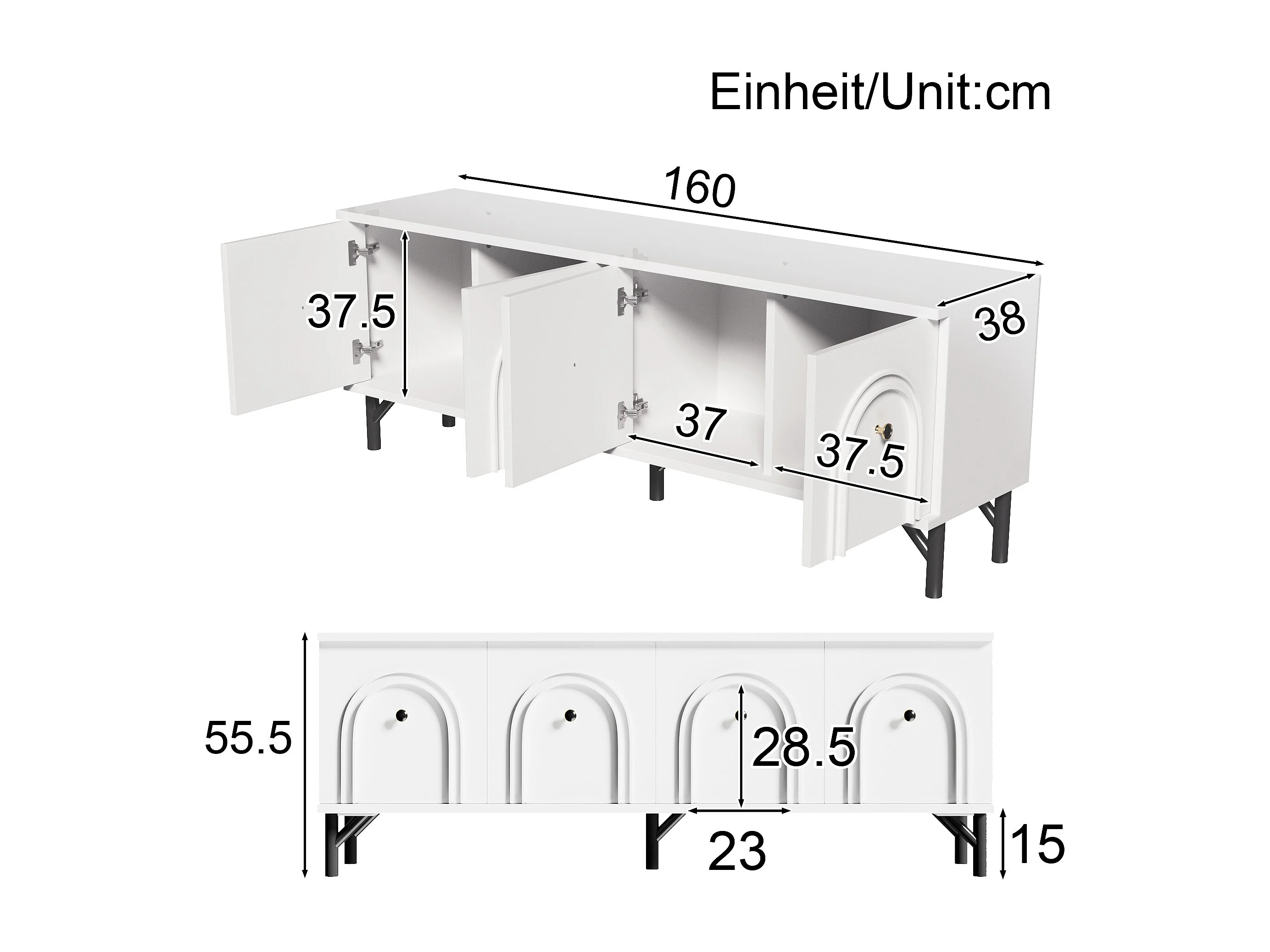 Meuble TV 4 portes, design moderne, Soft-Close, Gris, MDF (160x38x55.5cm)
