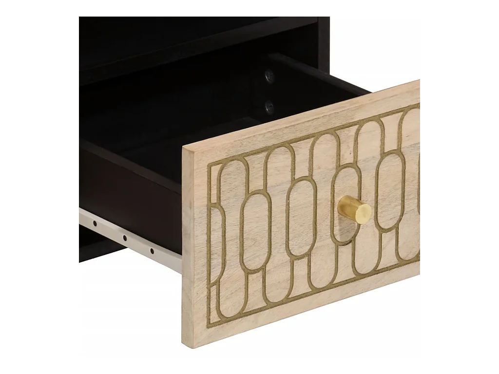 Meuble TV Moderne marron et noir 80x33,5x46 cm bois massif de manguier BE5784