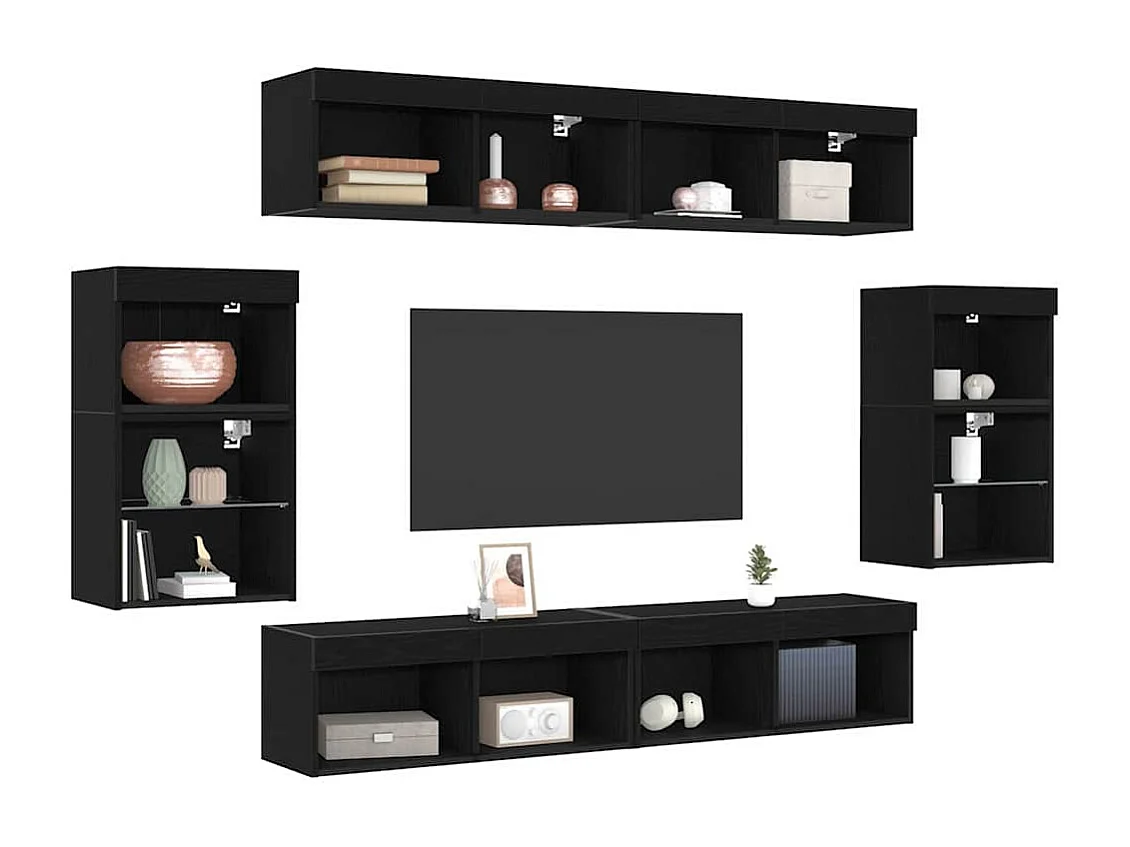 Centre de divertissement 8 pcs Chêne noir 40 x 28.5 x 40 cm