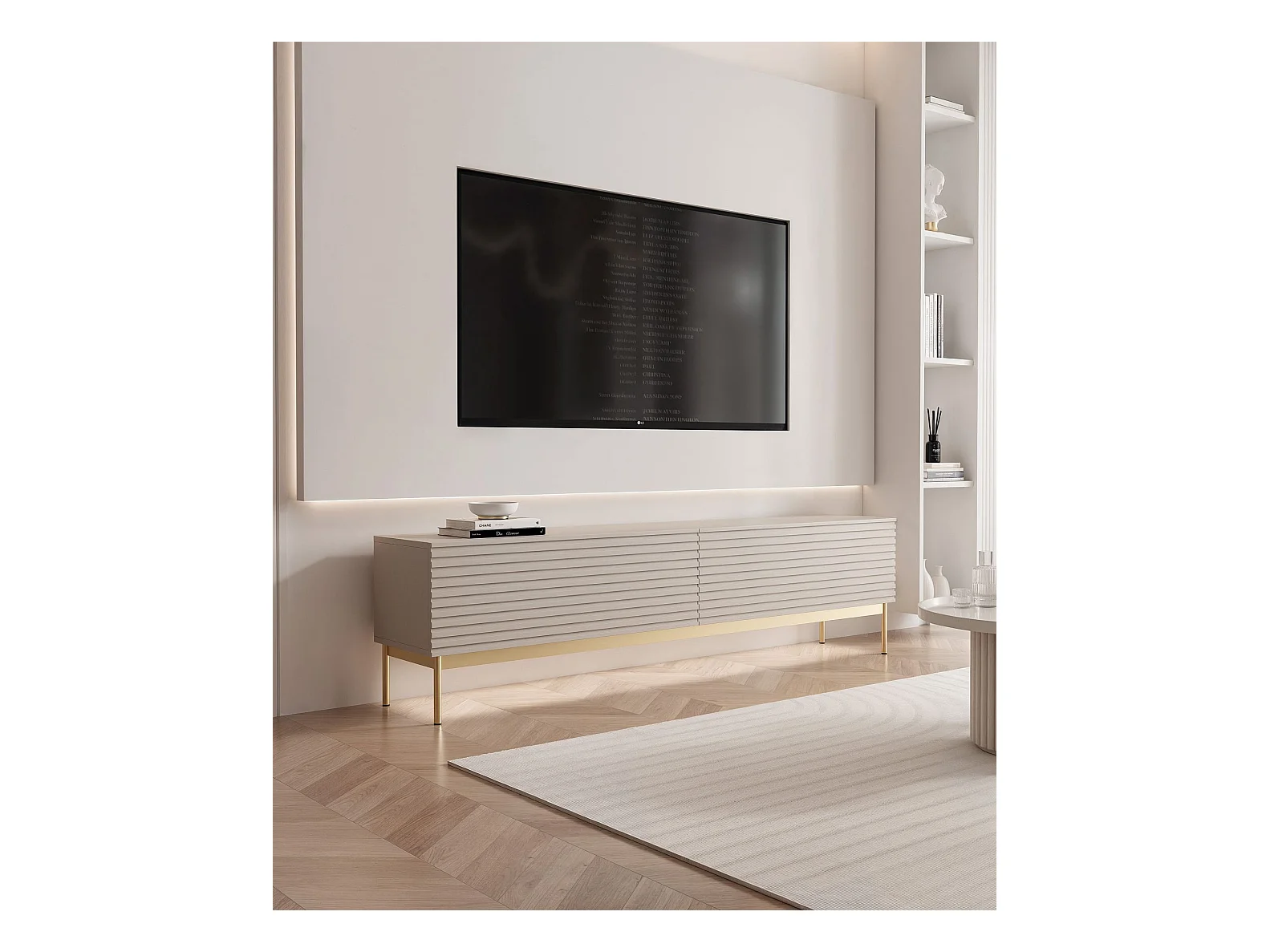 Meuble TV debout avec façades cannelées - 170 cm beige clair - DERRIVA