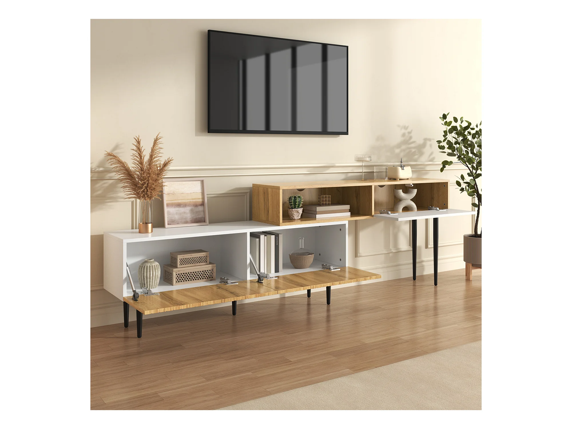 Meuble TV à longueur réglable - 220 x 30 x 63.4 cm - modulaire en 2 parties - MDF - naturel