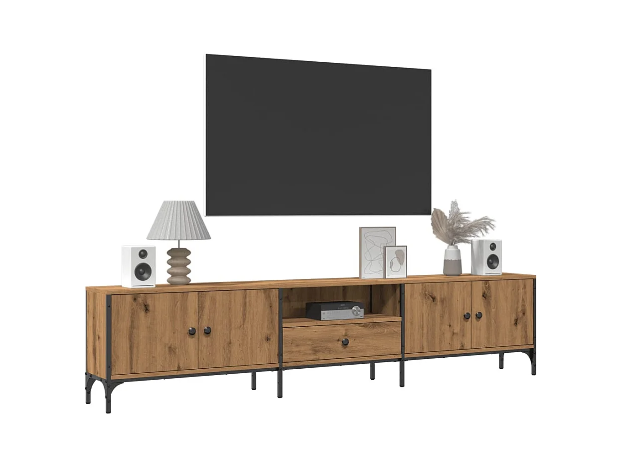 Meuble TV à tiroir chêne artisanal 200x25x44 cm bois ingénierie