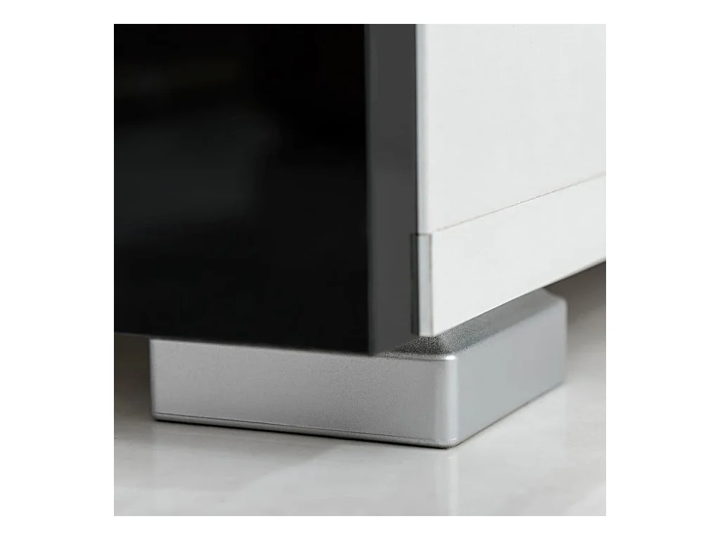 Meuble TV noir avec 4 portes et 1 tiroir de rangement, éclairage LED - pieds blancs