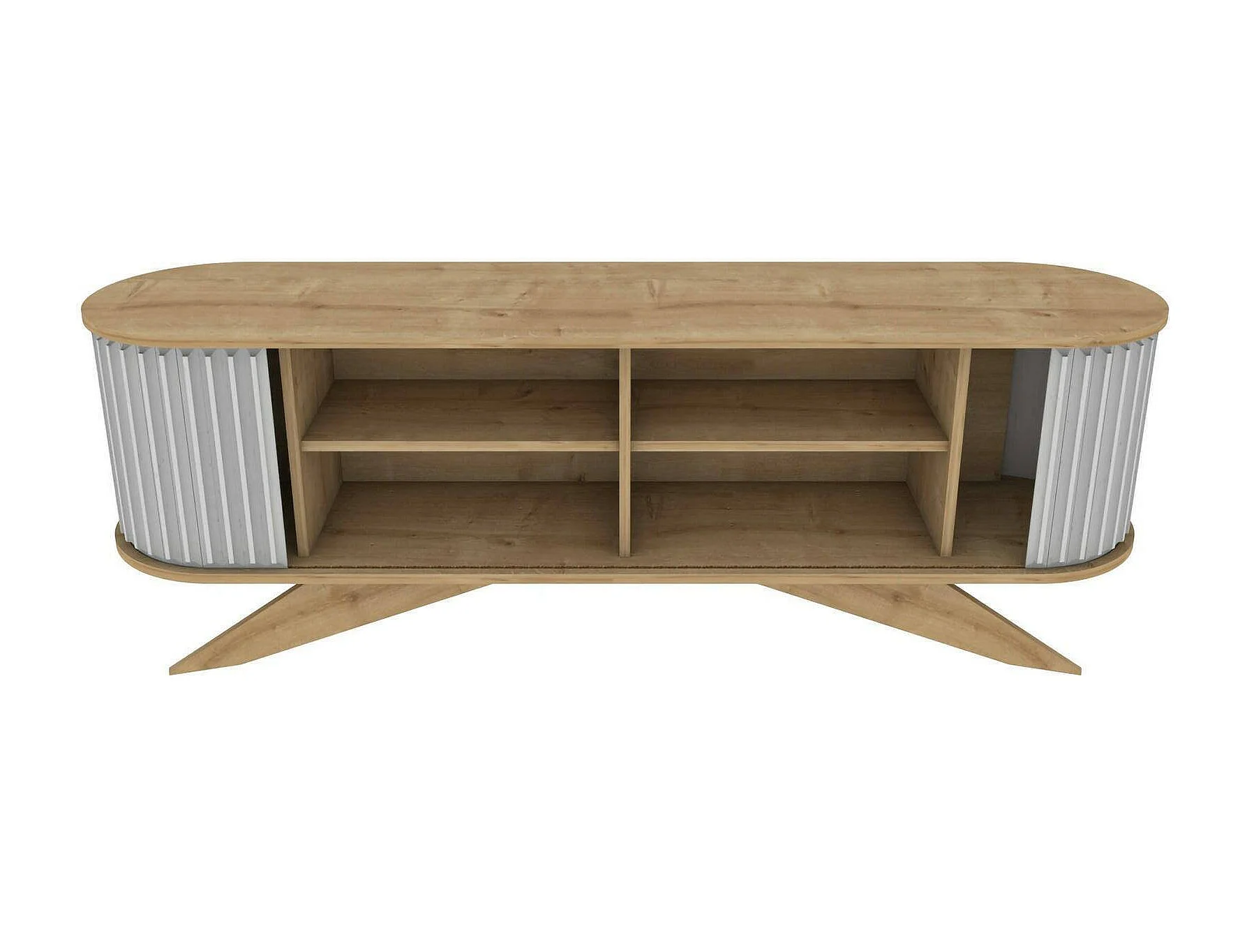 Meuble TV Aludra, Buffet de salon, Armoire basse pour TV, Base murale de rangement, 180x43h60 cm, Chêne et Blanc