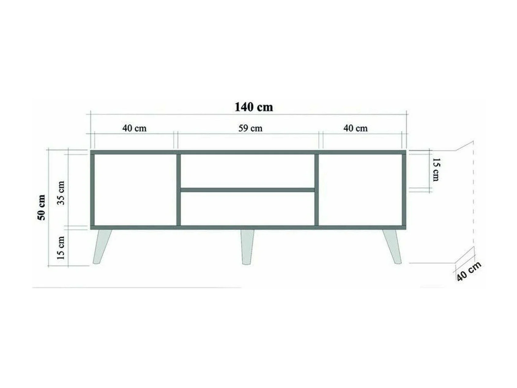 Meuble TV Amalthea, Buffet de salon, Armoire basse pour TV, Base murale de rangement, 140x40h50 cm, Chêne et Multicolore