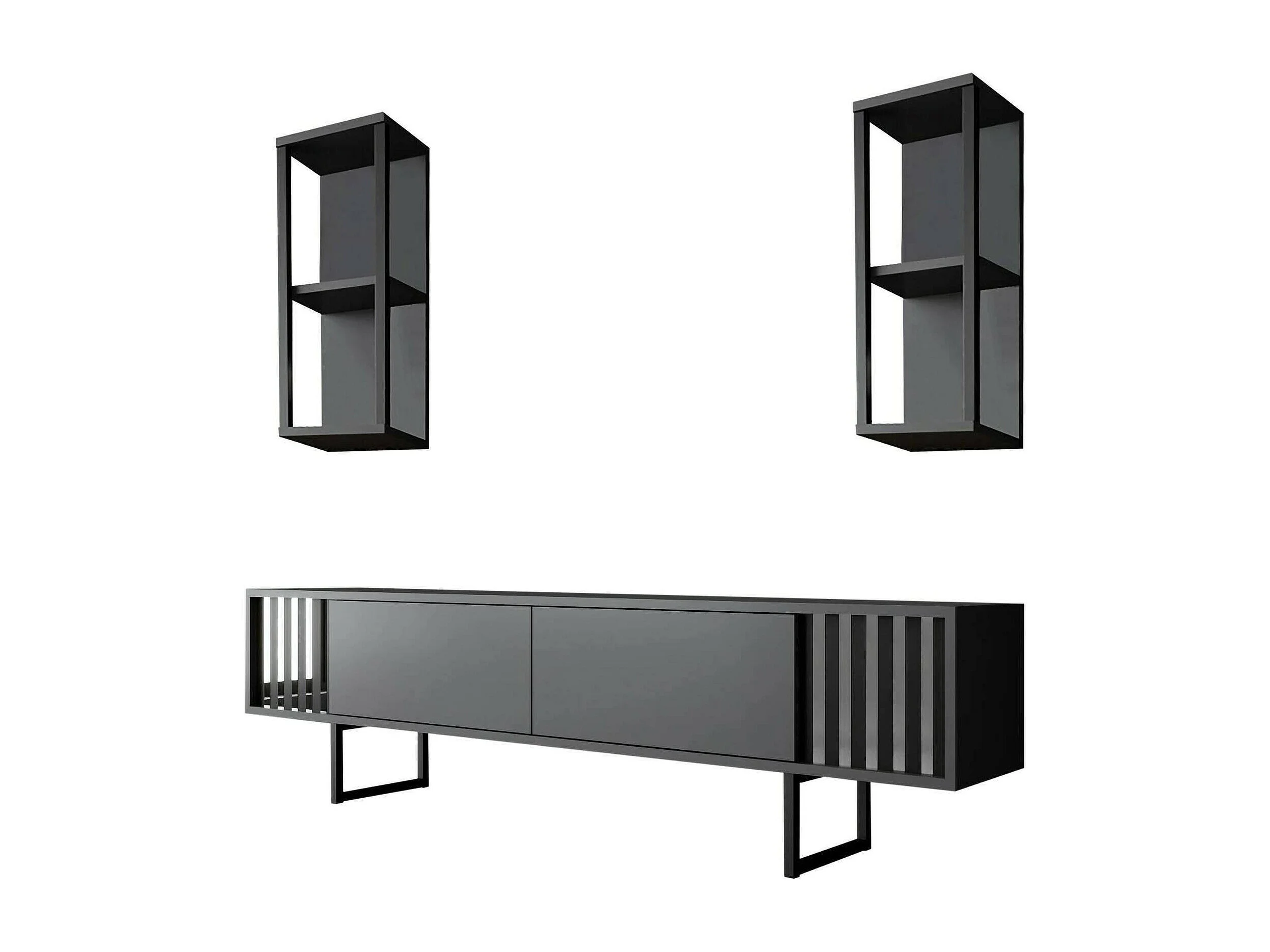 Meuble TV Ananke, Buffet de salon, Armoire basse pour TV, Base murale de rangement, 180x30h48 cm, Anthracite et Noir