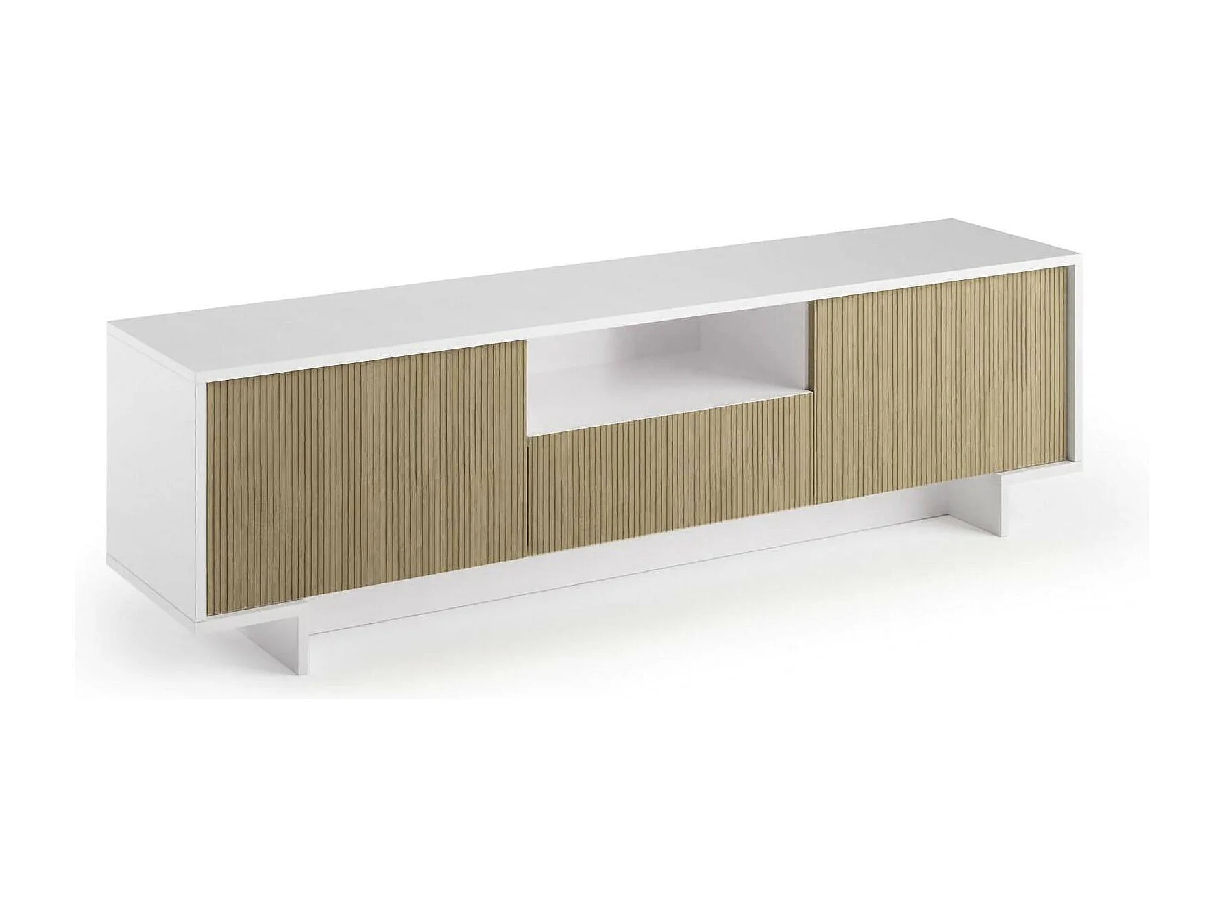 Meuble TV Andromeda, Meuble TV pour salon, Buffet bas de salon avec 2 portes et 1 tiroir, 100% Made in Italy, 170x42h48 cm, Blanc et Beige