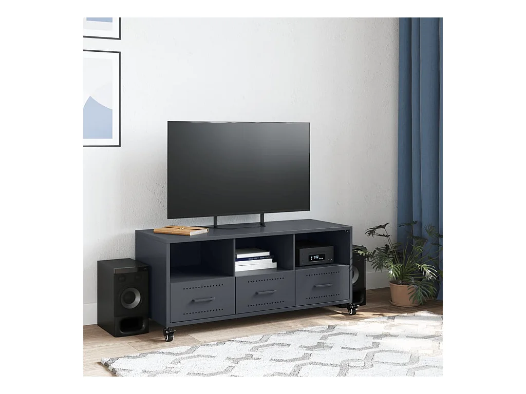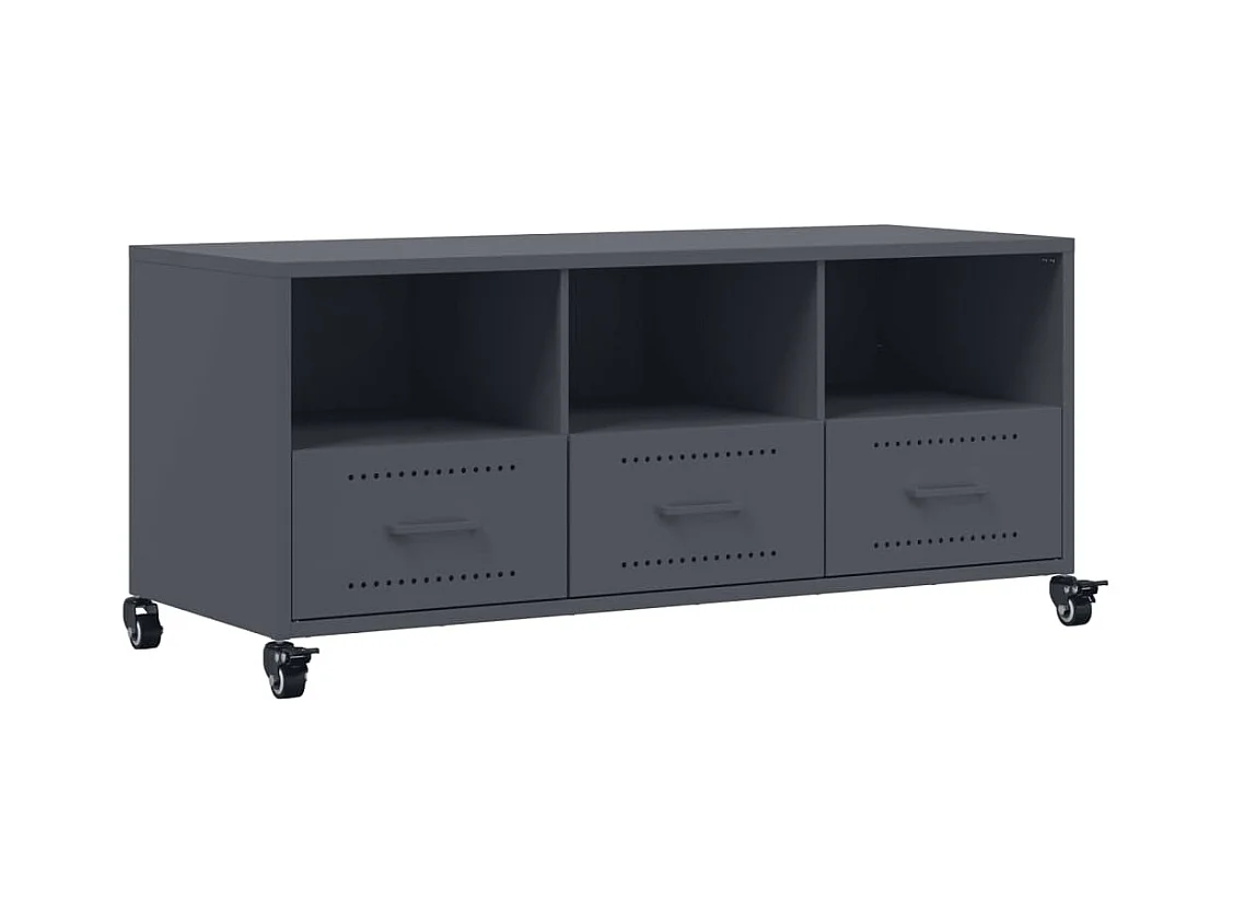 Meuble TV anthracite 101,5x39x43,5 cm acier laminé à froid