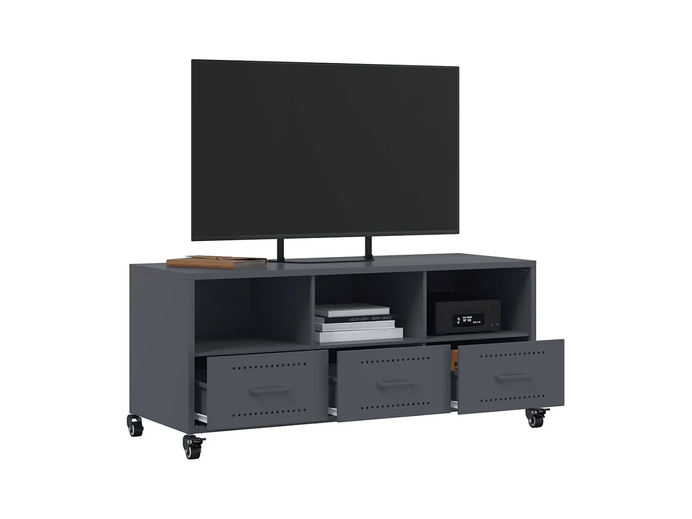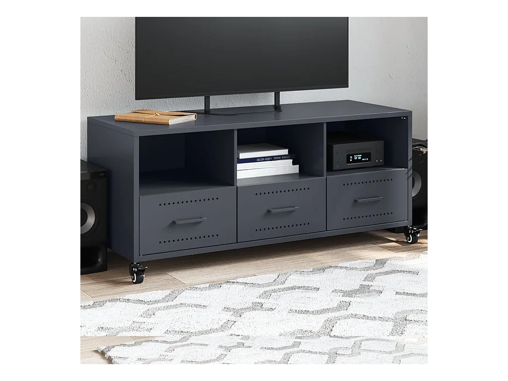 Meuble TV anthracite 100,5x39x50,5 cm acier laminé à froid