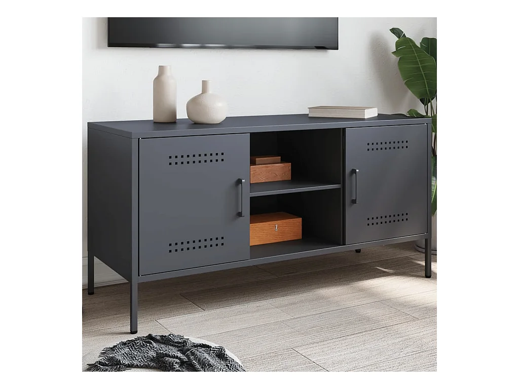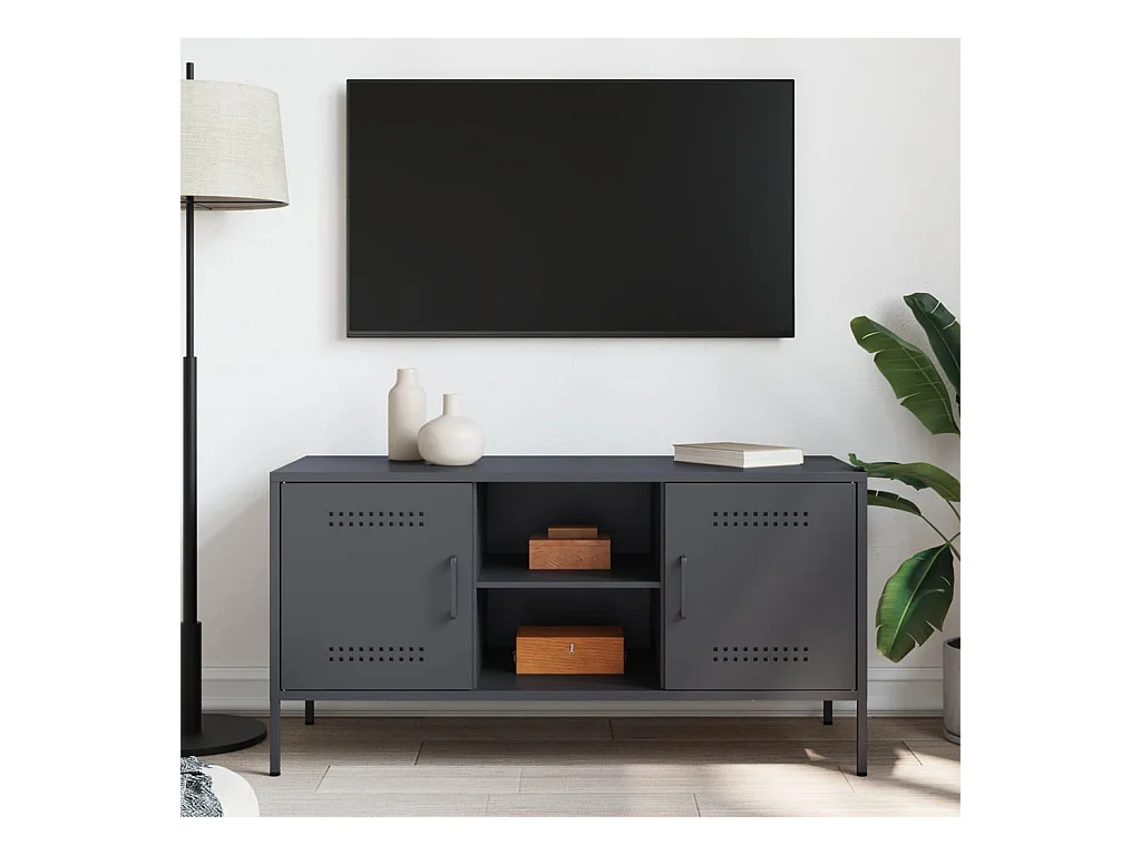 Meuble TV anthracite 100,5x39x50,5 cm acier laminé à froid FR891990