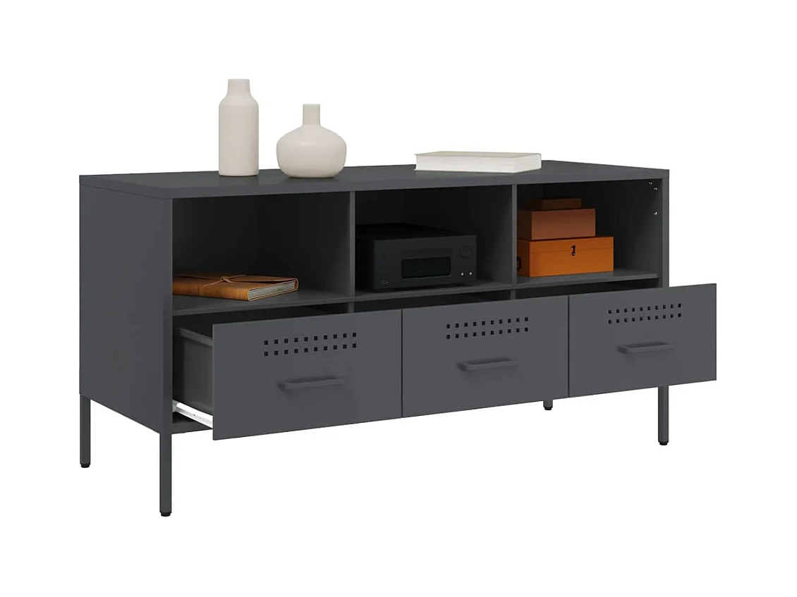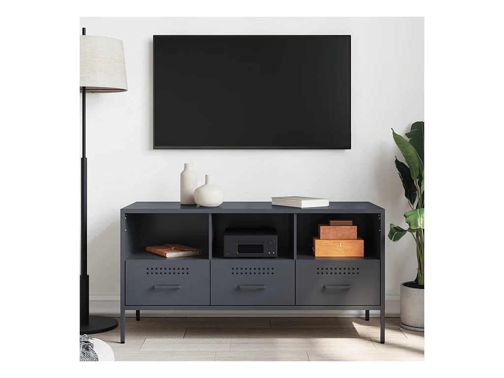 Meuble TV anthracite 100,5x39x50,5 cm acier laminé à froid FR891990