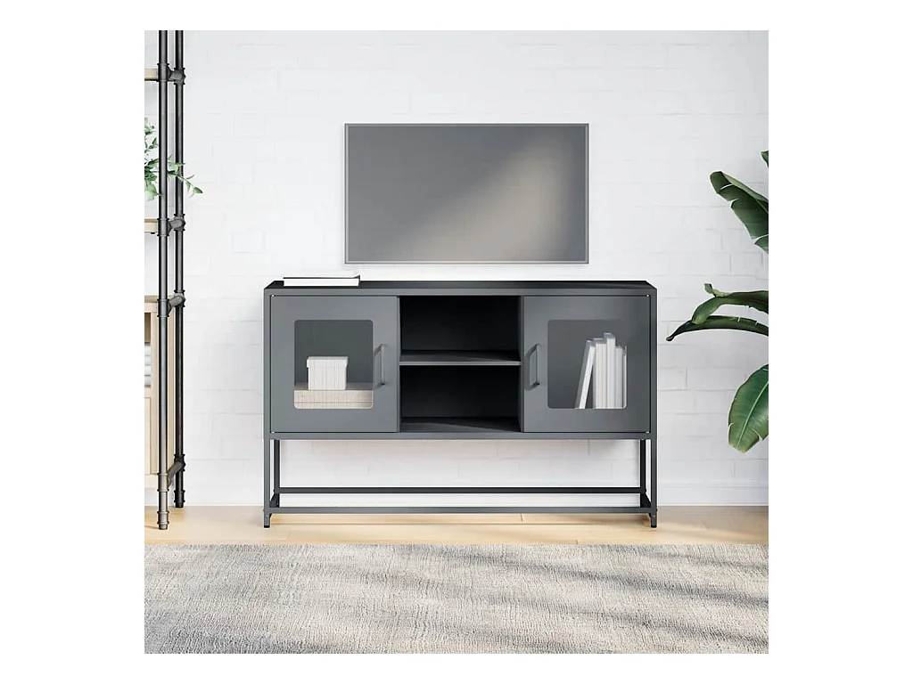 Meuble TV anthracite 100,5x39x60,5 cm acier laminé à froid