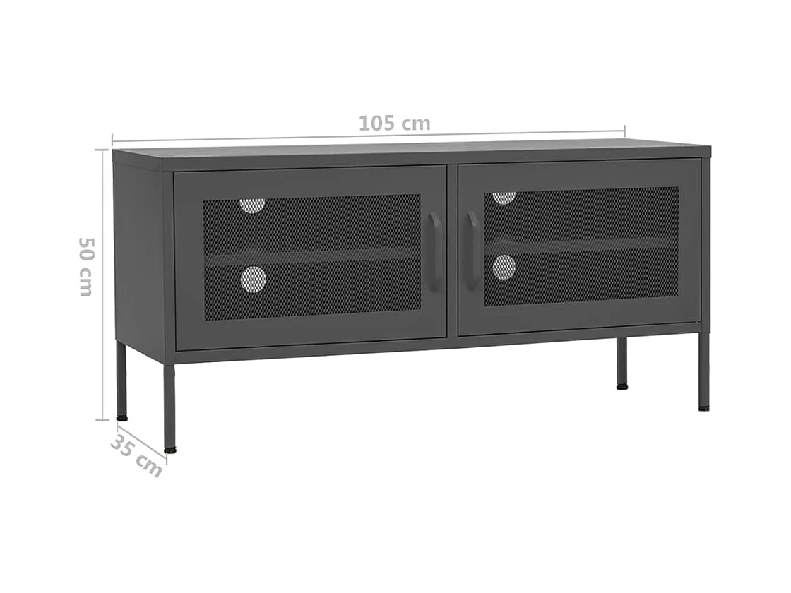 Meuble TV Anthracite 105x35x52 cm Acier et verre