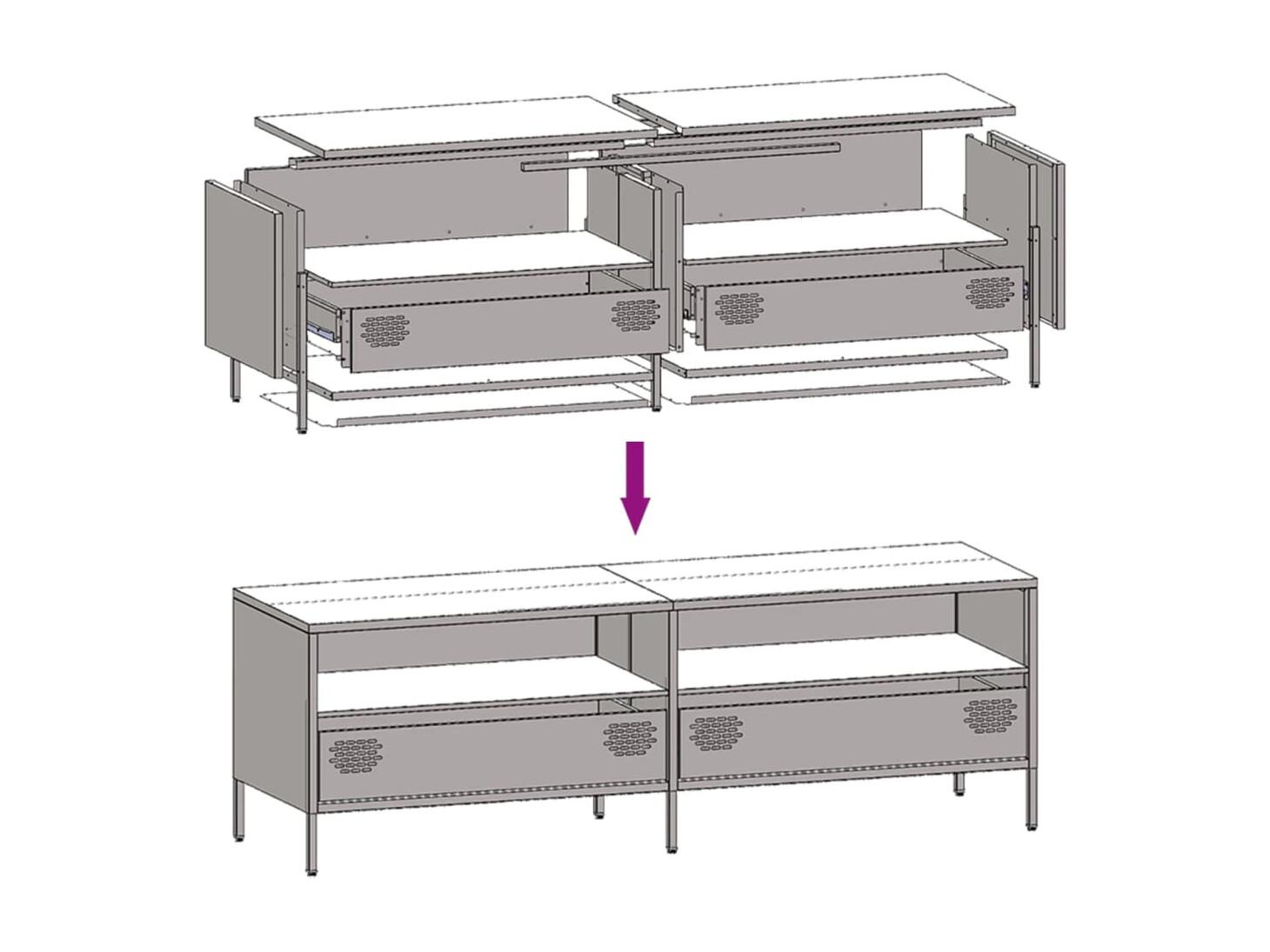Meuble TV anthracite 135x39x43,5 cm acier laminé à froid