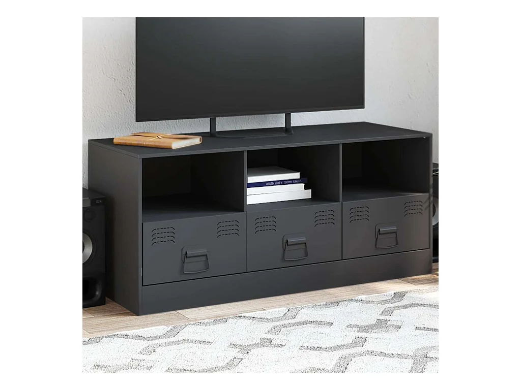 Meuble TV anthracite 101,5x39x43,5 cm acier laminé à froid