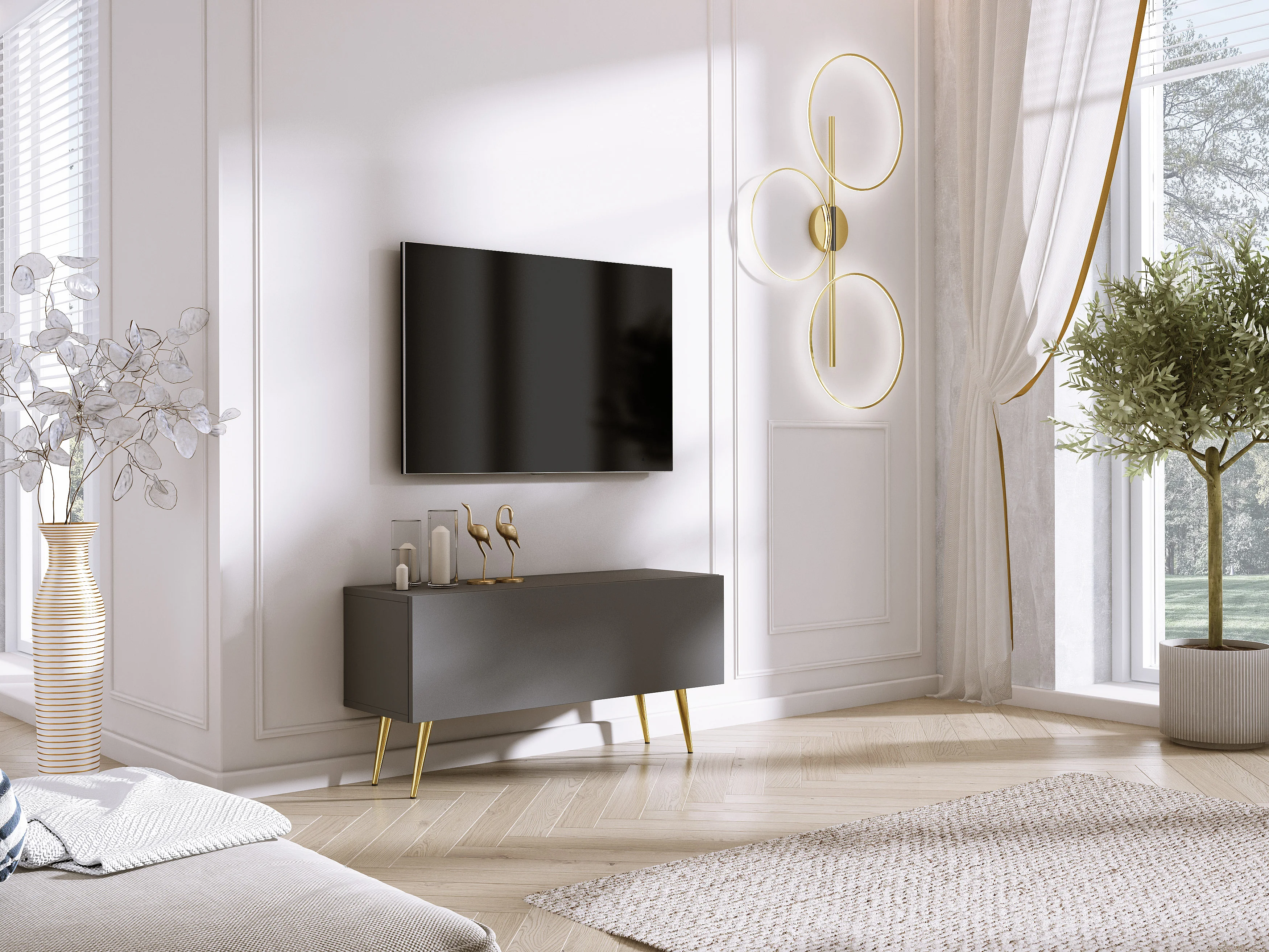 Meuble TV Anthracite, pieds dorées, 100 x 52 x 32 cm
