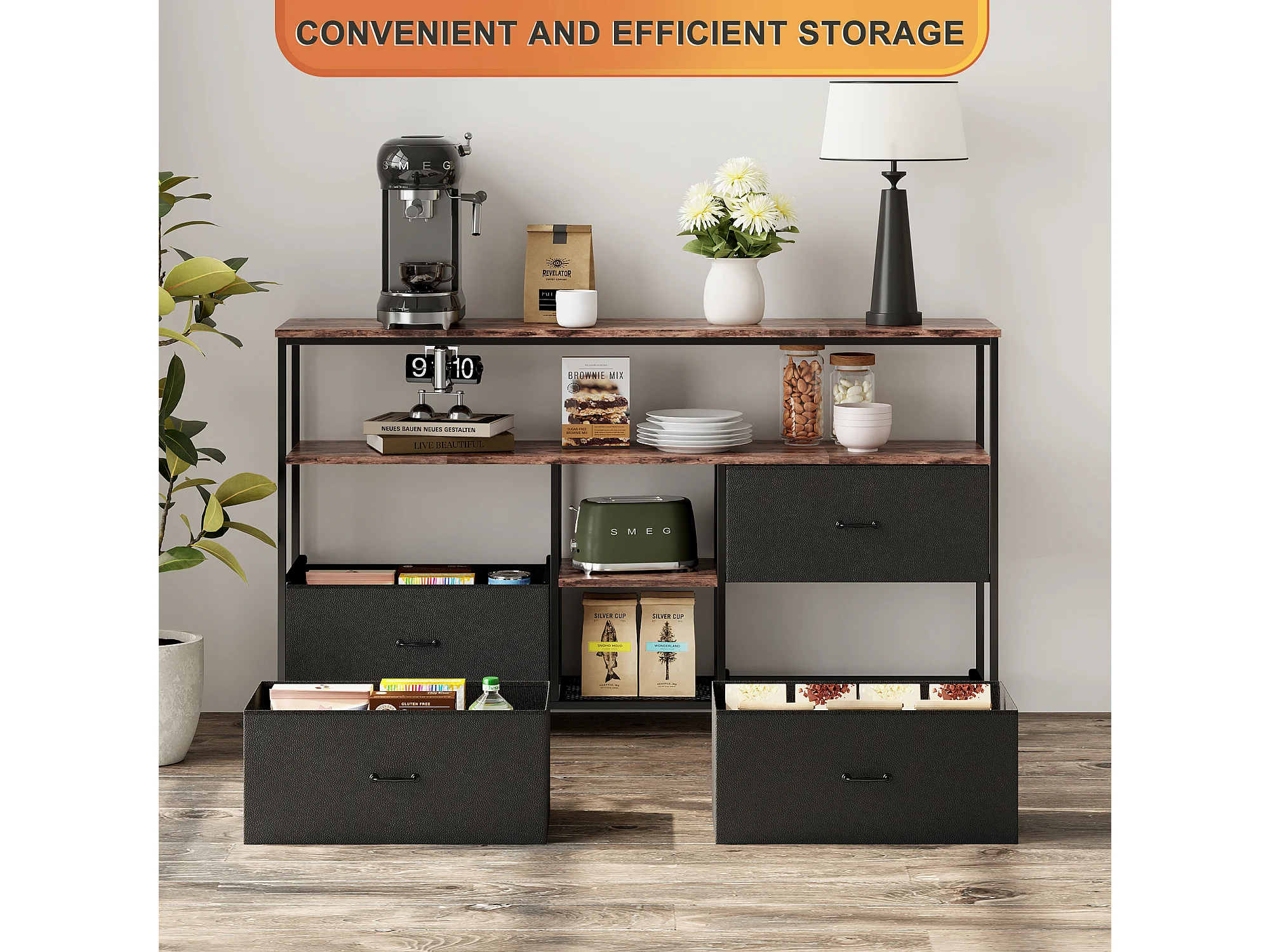 Meuble TV LED avec 4 Tiroirs, 137x30x78cm Banc TV Rétro Buffet, Noir