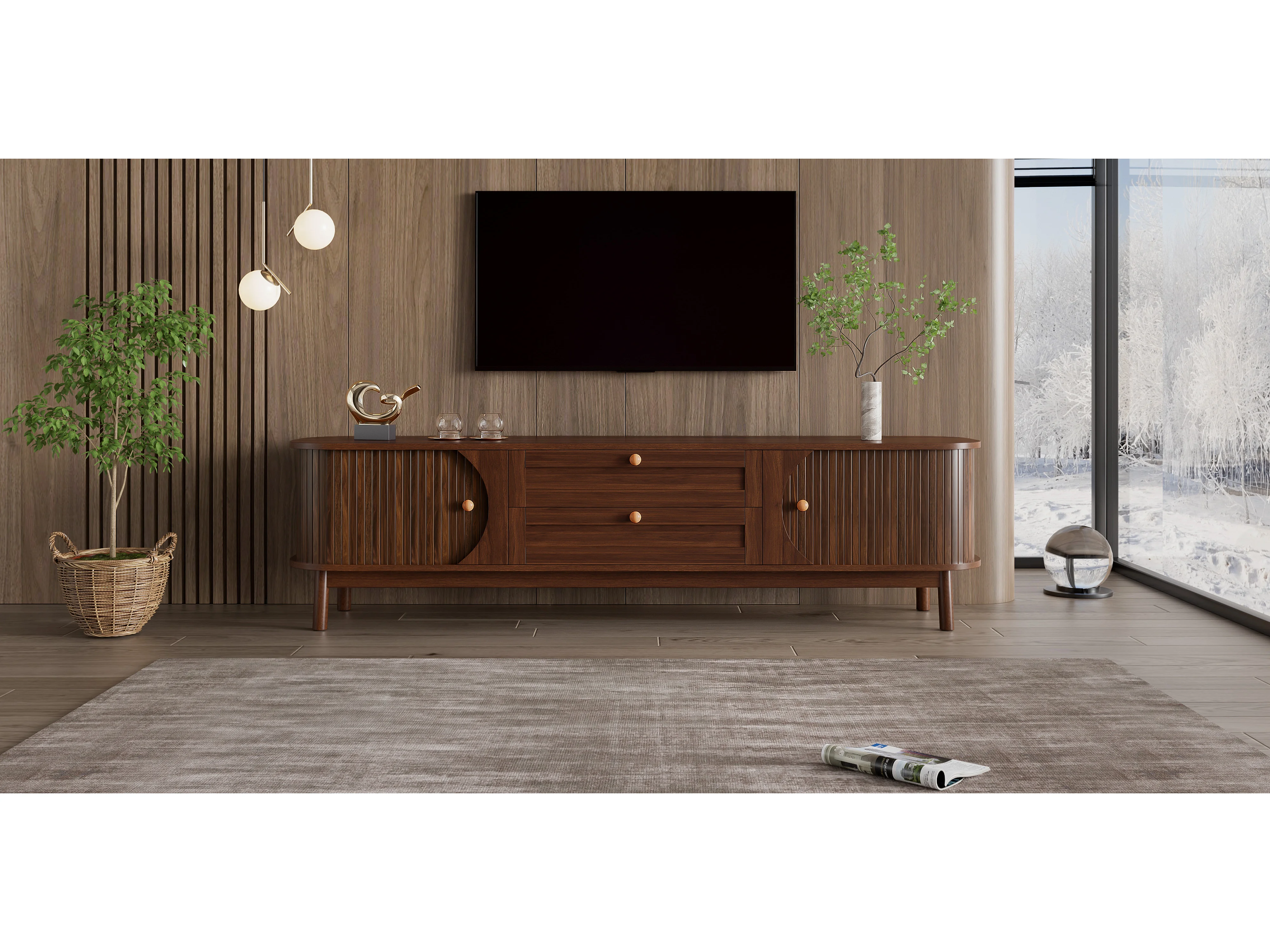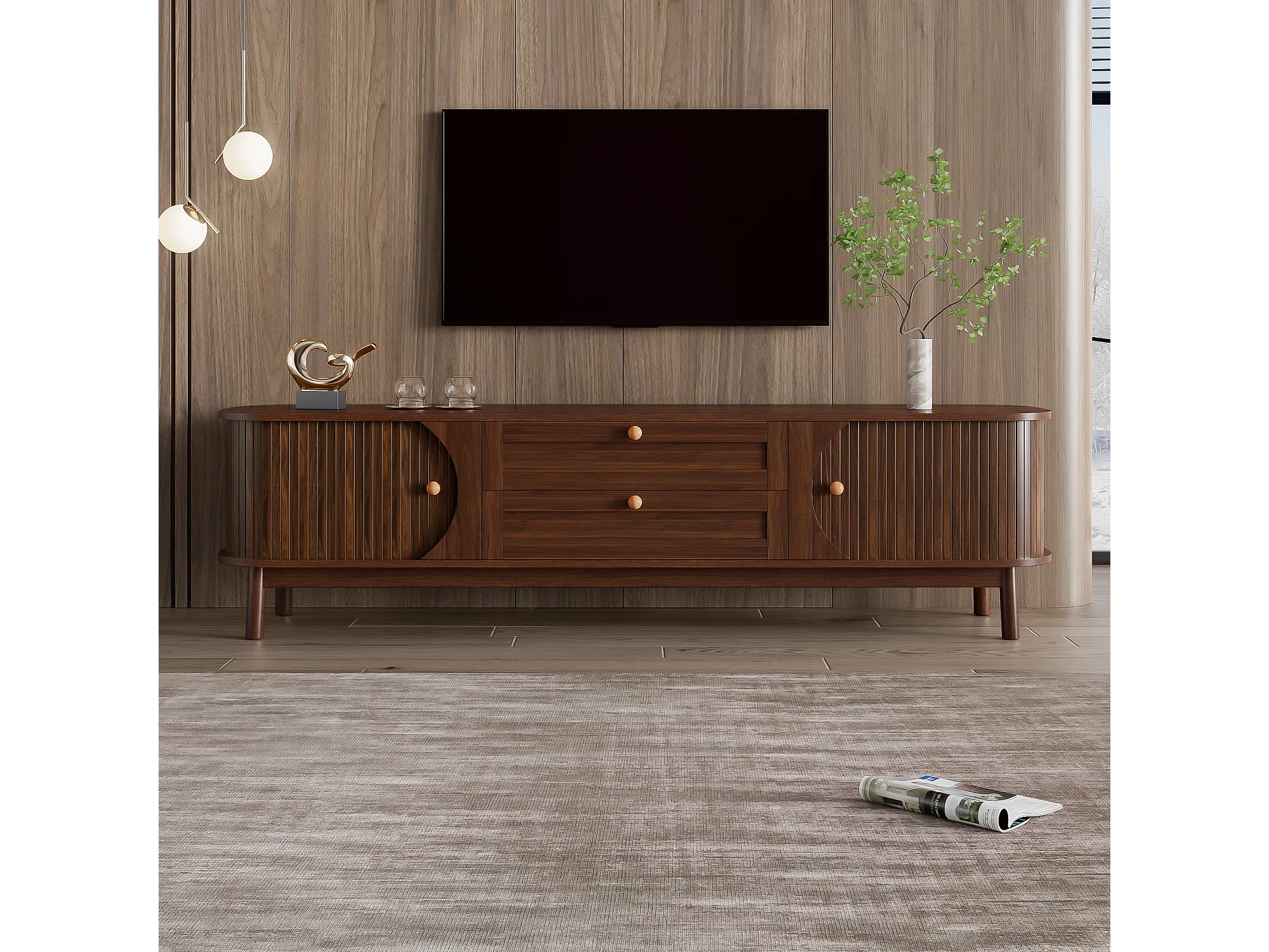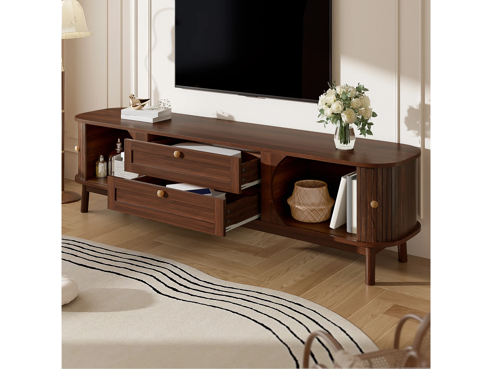 Meuble TV aspect bois - 170 x 39.5 x 46 cm - avec 2 tiroirs + 2 portes - angles arrondis - MDF - marron