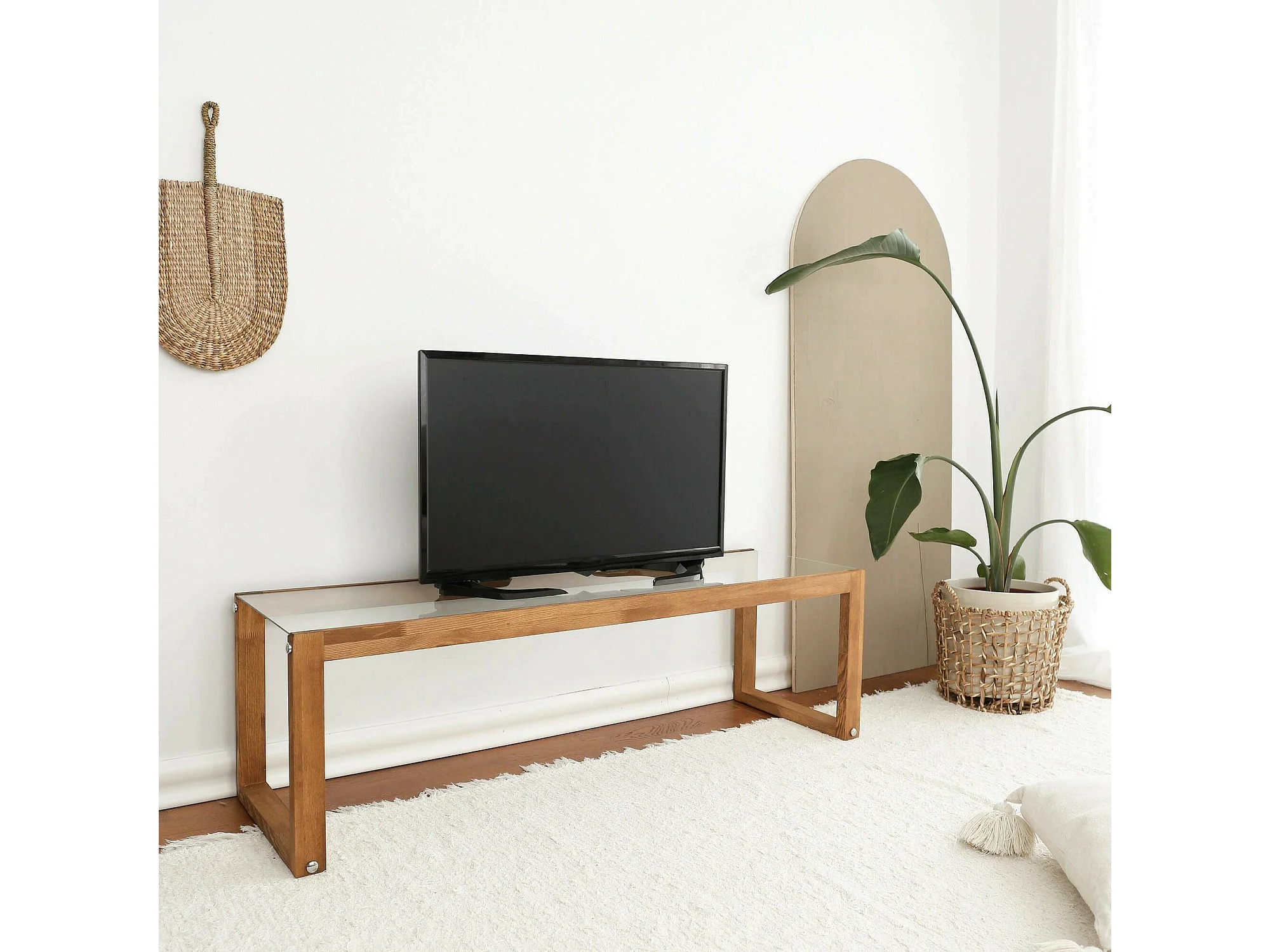 Meuble TV Astrea, Buffet de salon, Armoire basse pour TV, Base murale de rangement, 130x40h40 cm, Chêne