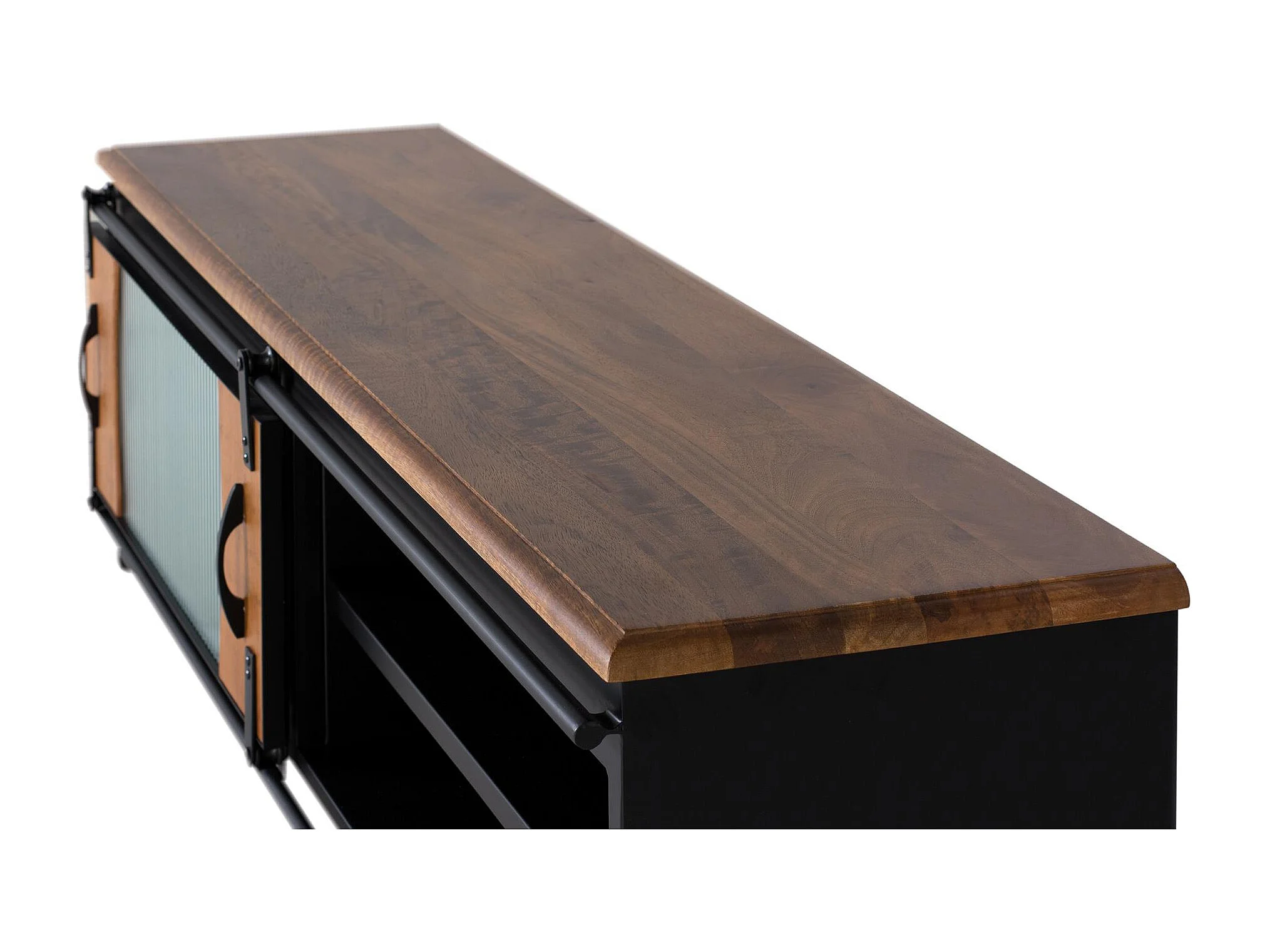 Meuble TV 2 portes, 2 niches et 2 ouvertures passe-câbles L166 cm - EMILE