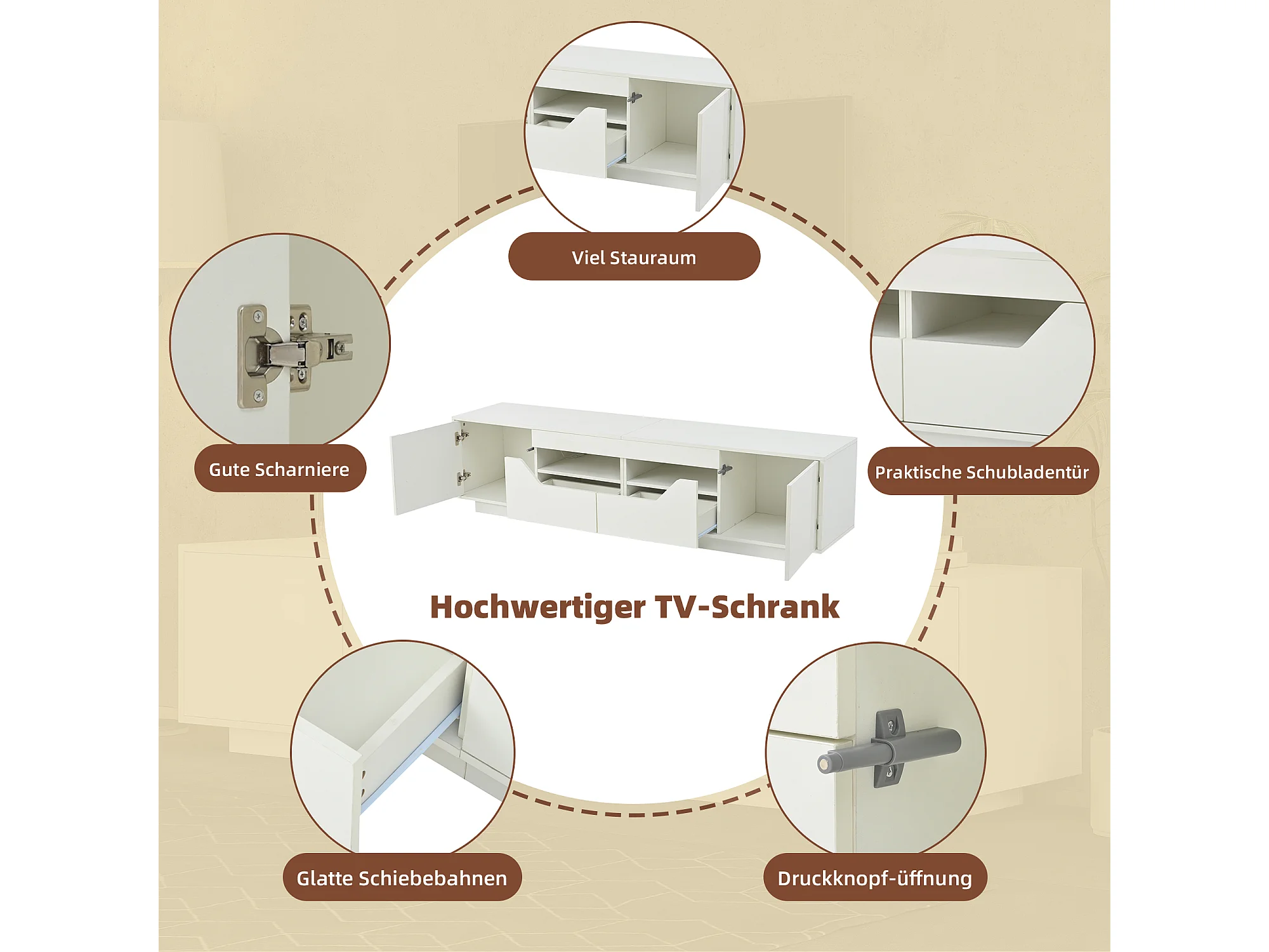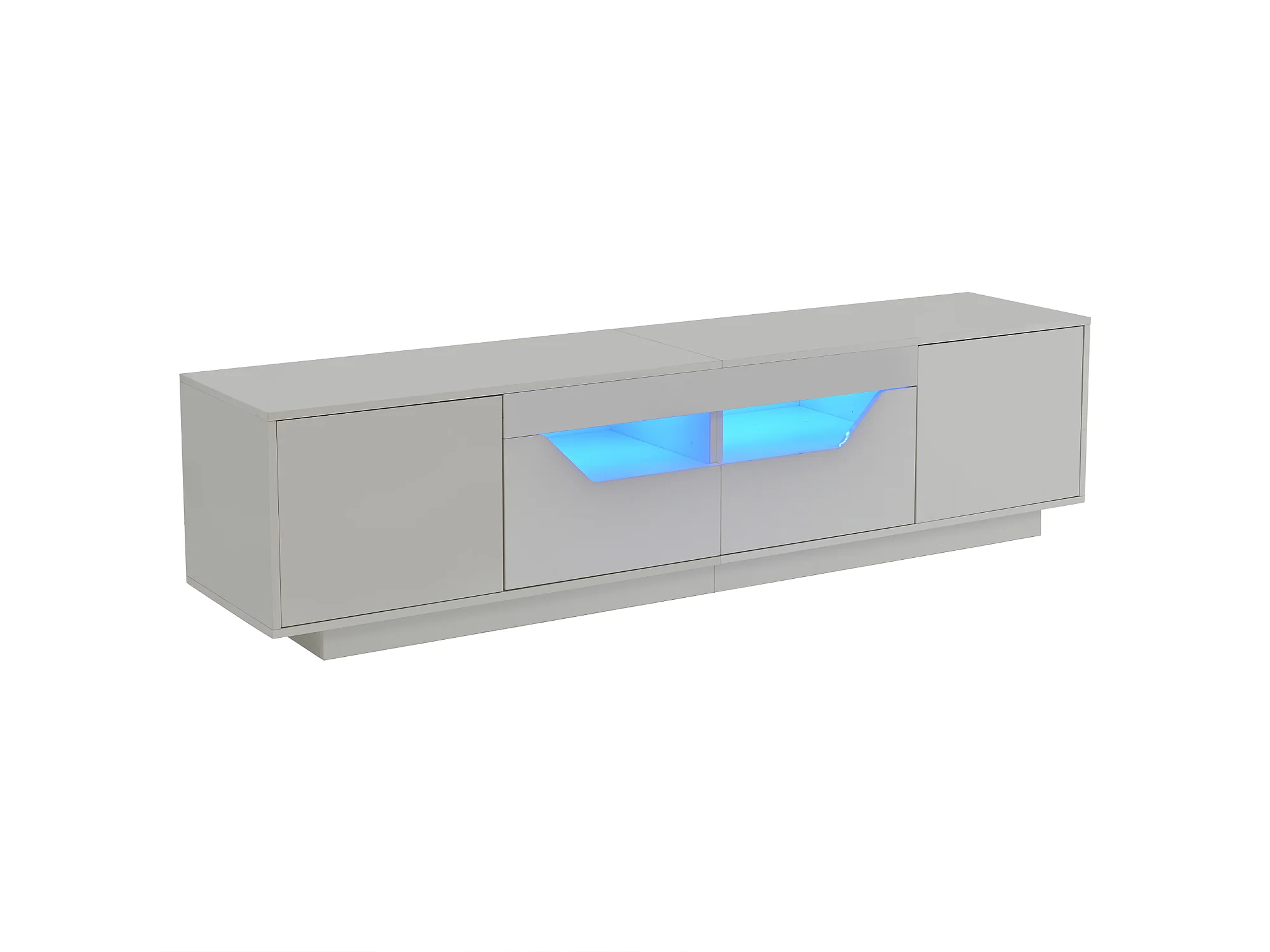 Meuble TV autoportant - 180 x 40 x 45 cm - avec 2 tiroirs + 2 placards + Leds - aggloméré - blanc