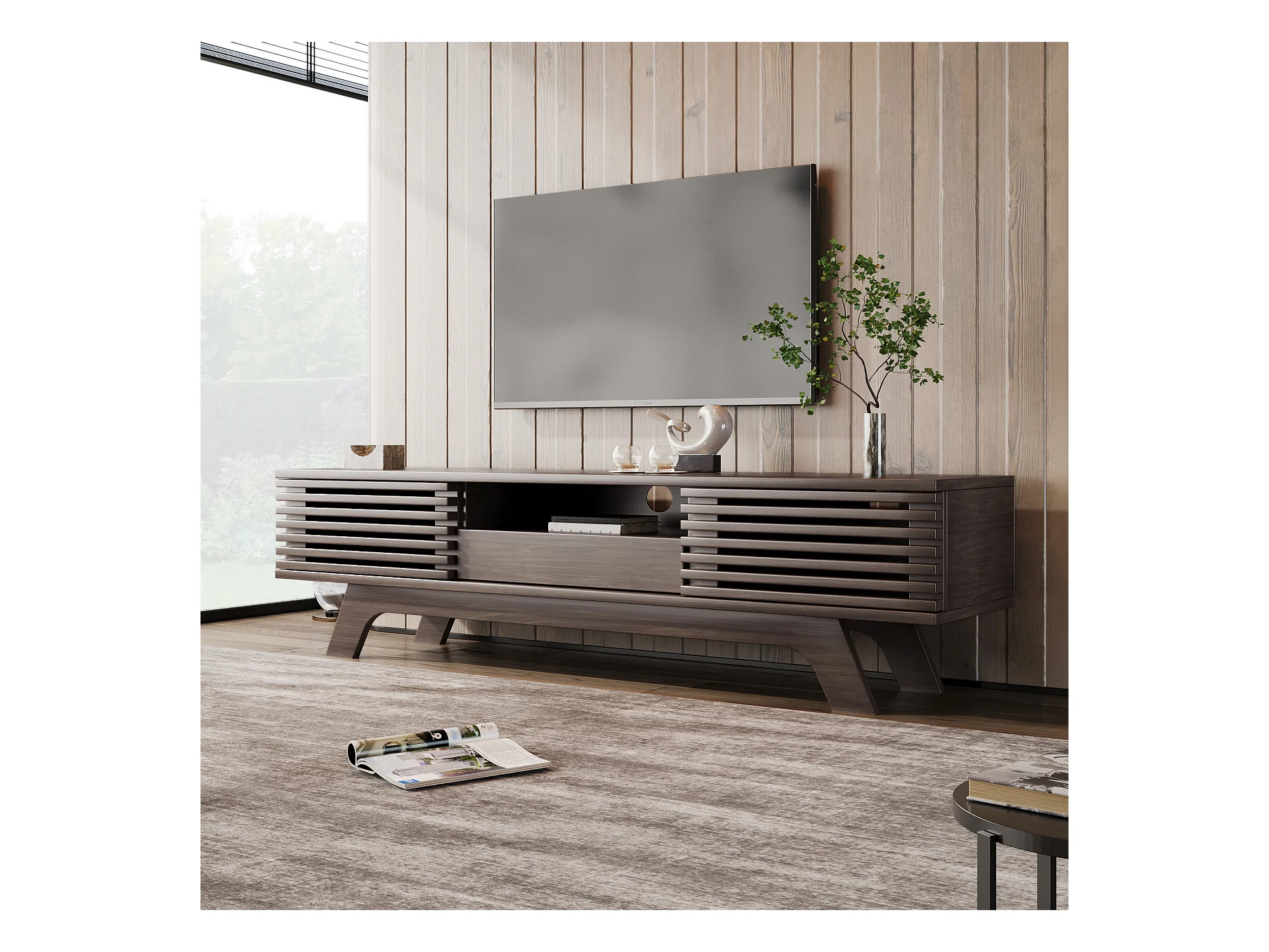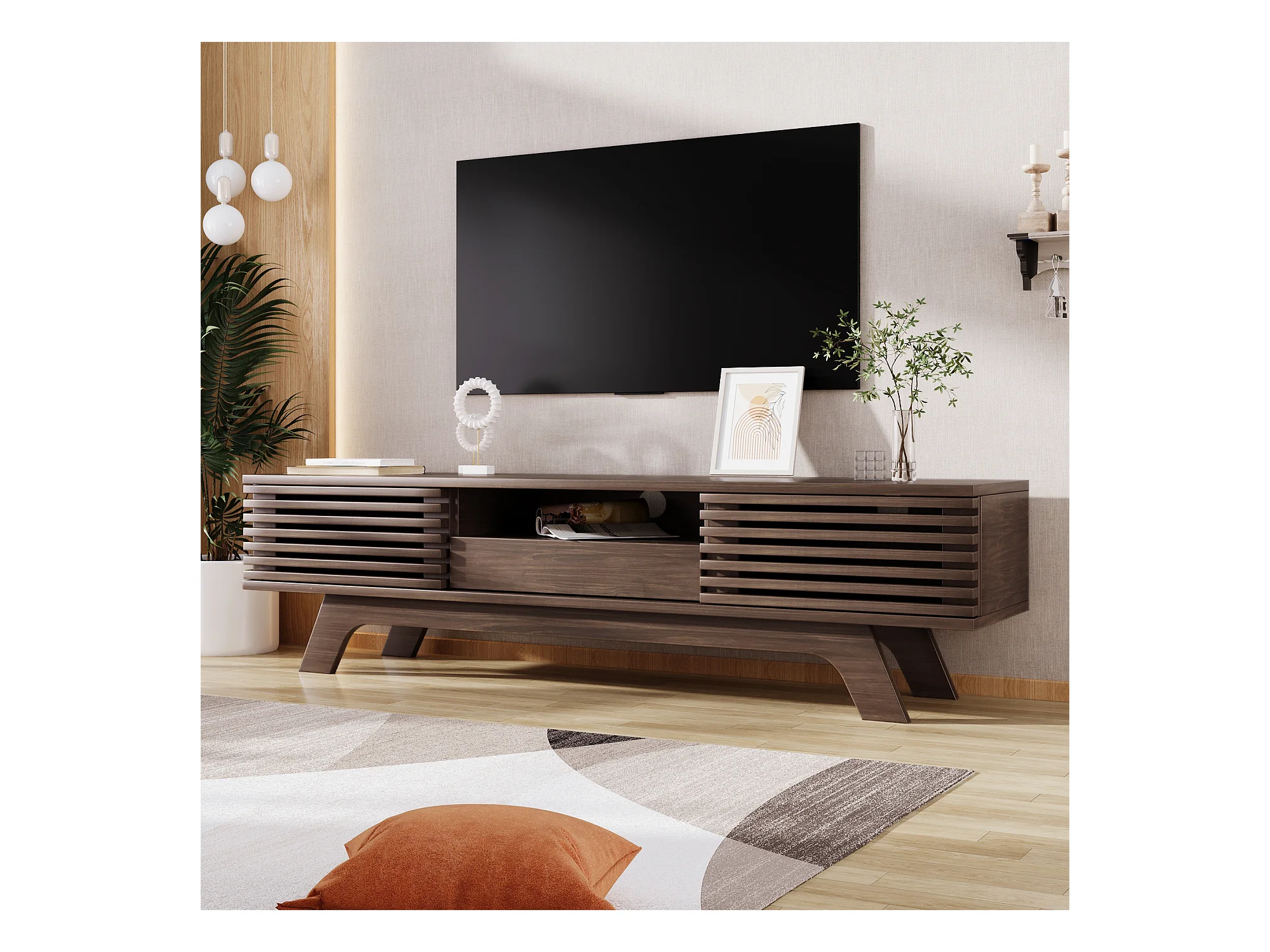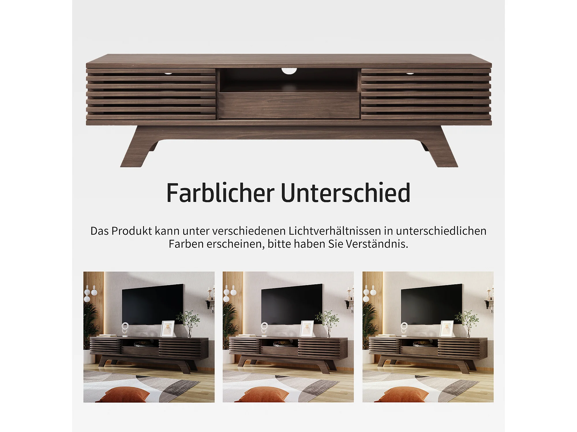 Meuble TV avec 1 tiroir et 2 portes, design vintage, bois aggloméré, couleur bois naturel (150x35x44 cm)