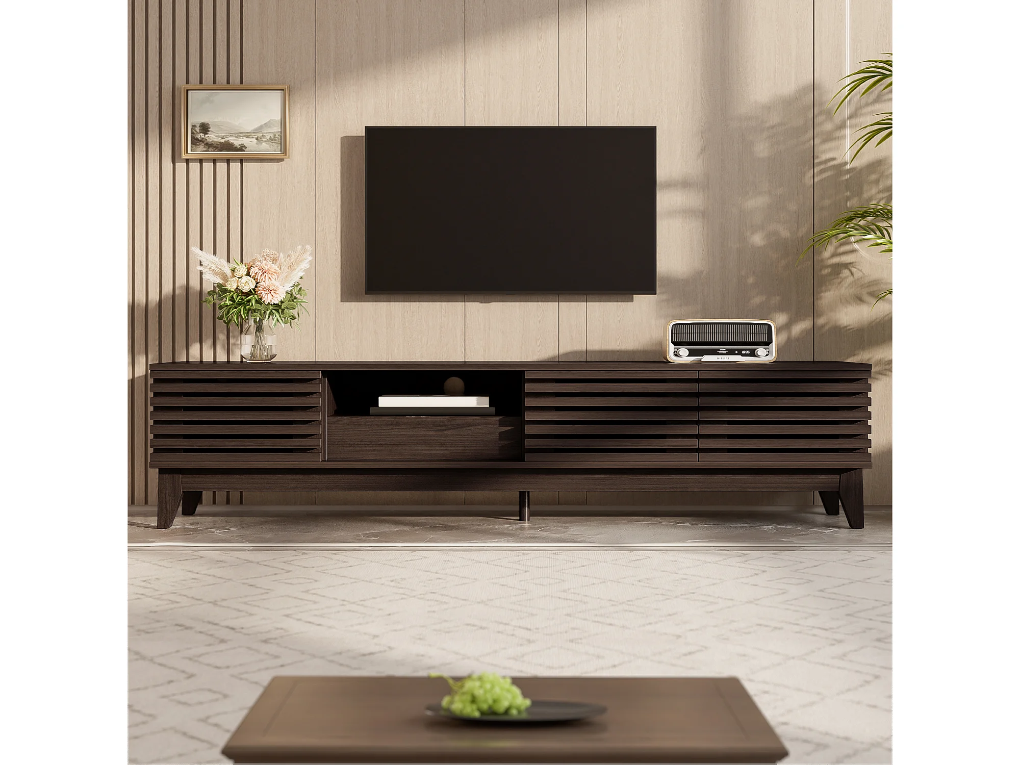 Meuble TV avec 1 tiroir et 3 portes 170 x 35 x 40 cm - Couleur bois