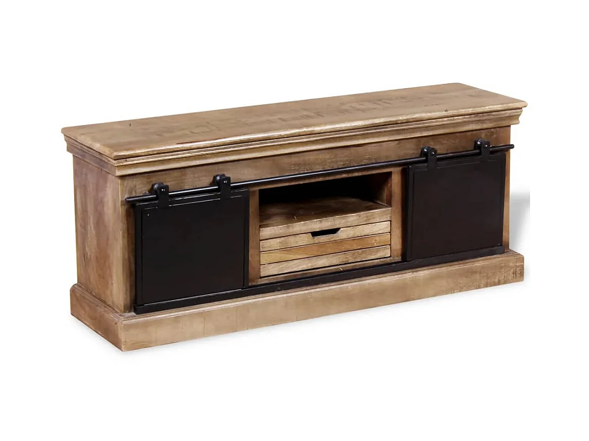 Meuble TV avec 2 portes coulissantes Bois de manguier massif BE65027