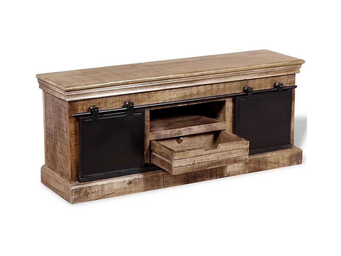 Meuble TV avec 2 portes coulissantes Bois de manguier massif