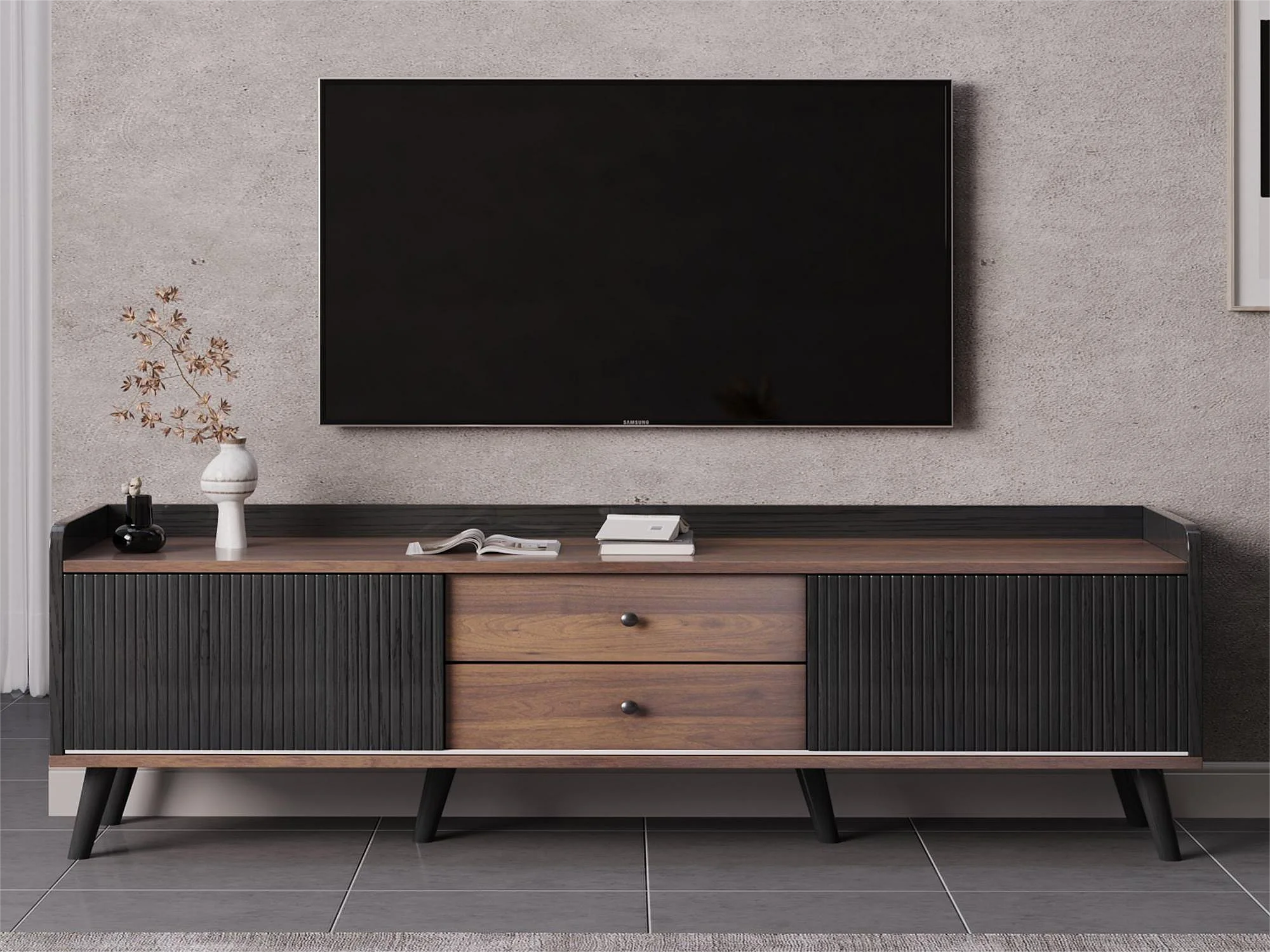 Meuble TV avec 2 tiroirs et 2 portes coulissantes - style moderne - coloris: noir et naturel