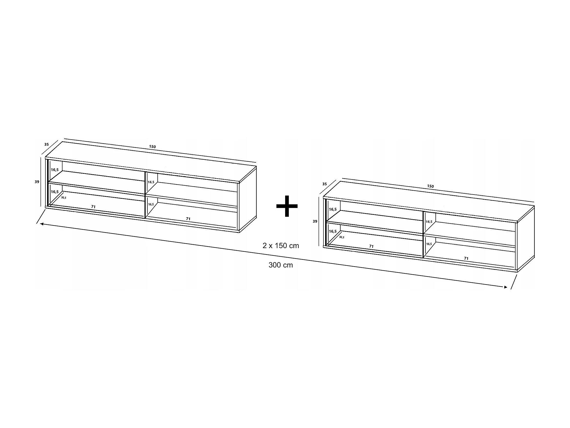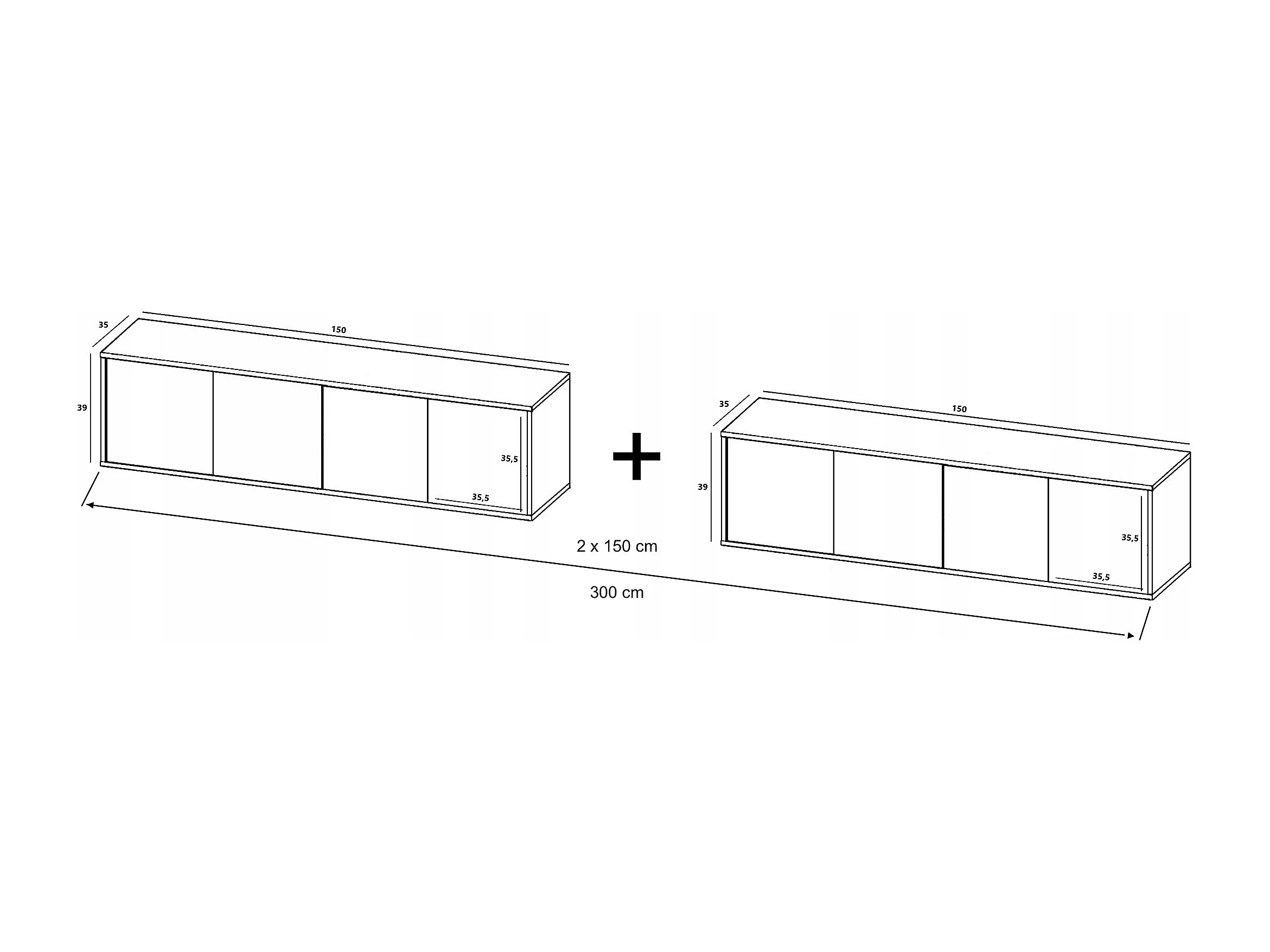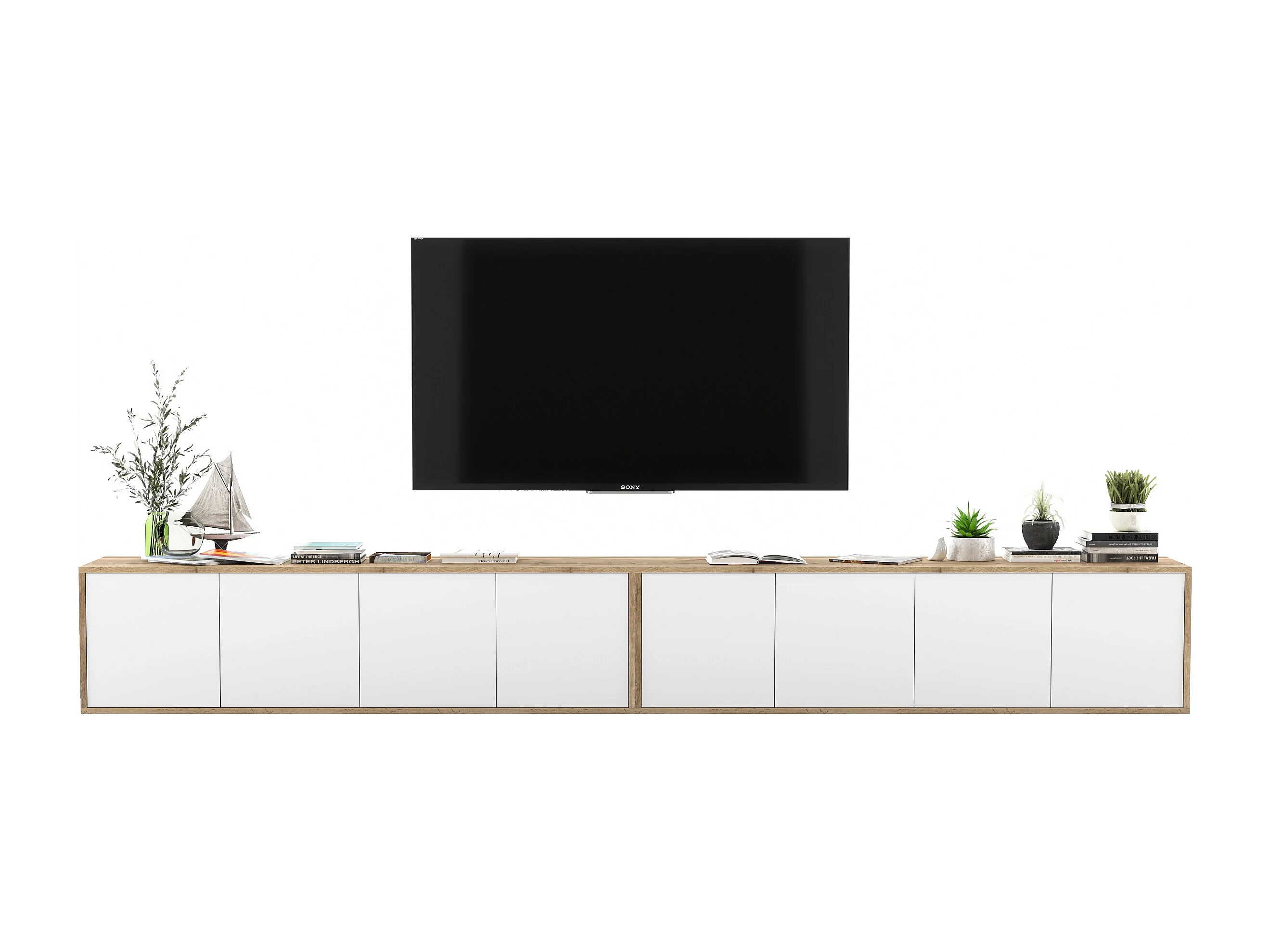 Meuble TV avec 8 portes - carcasse chêne wotan façades blanc mat - 300 cm