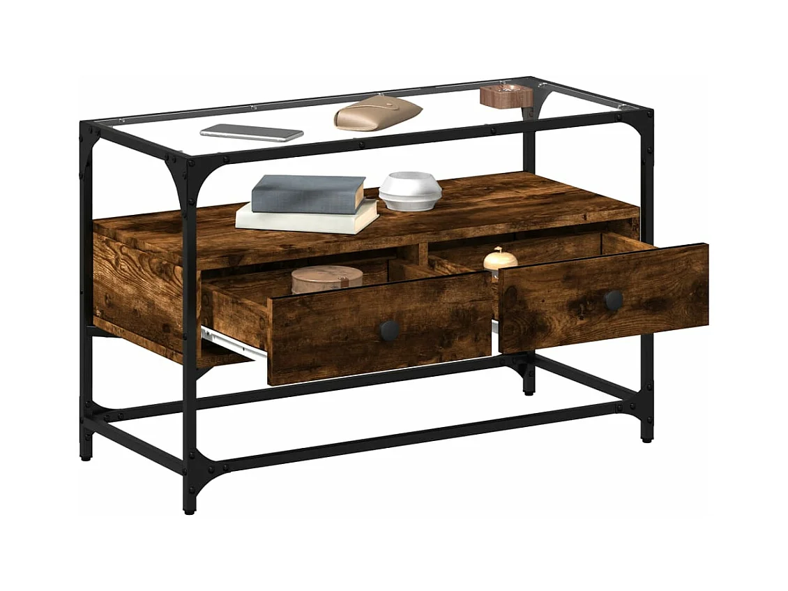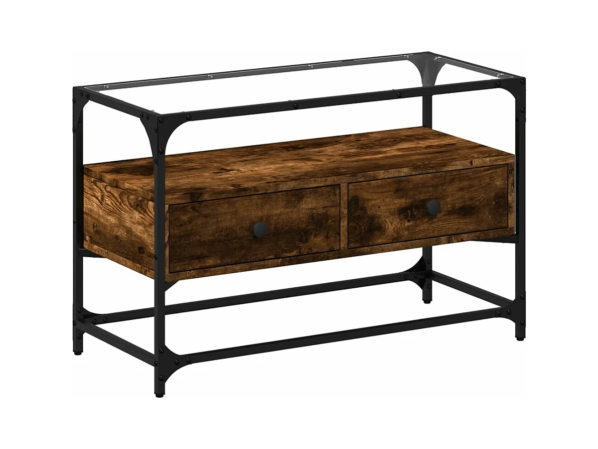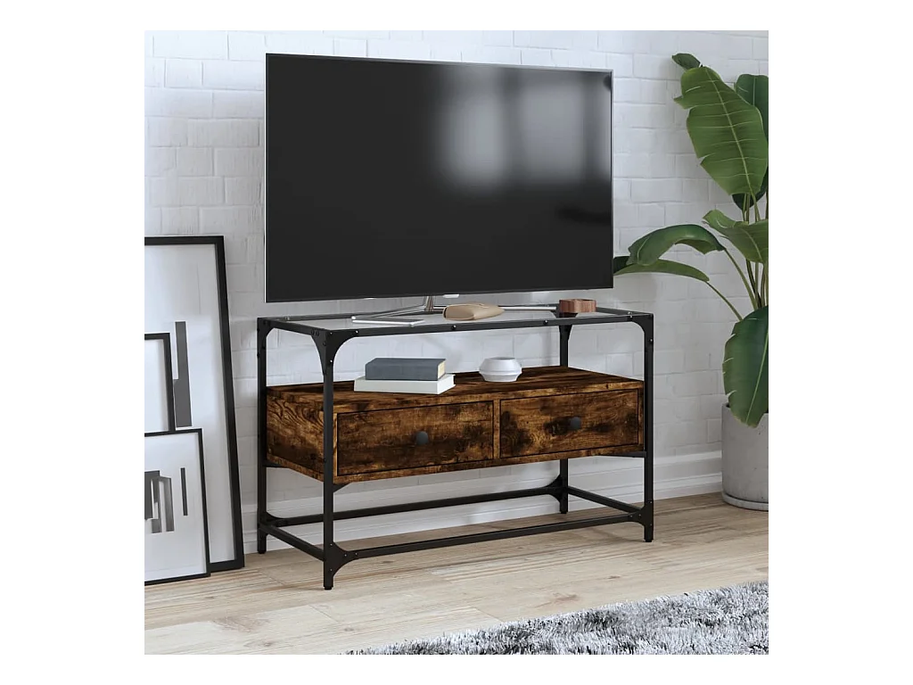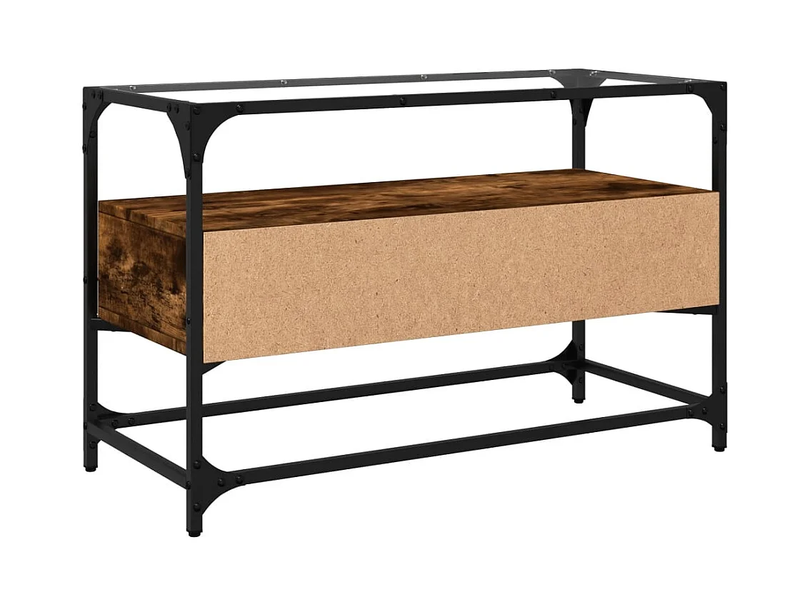 Meuble TV avec dessus en verre chêne fumé bois d'ingénierie