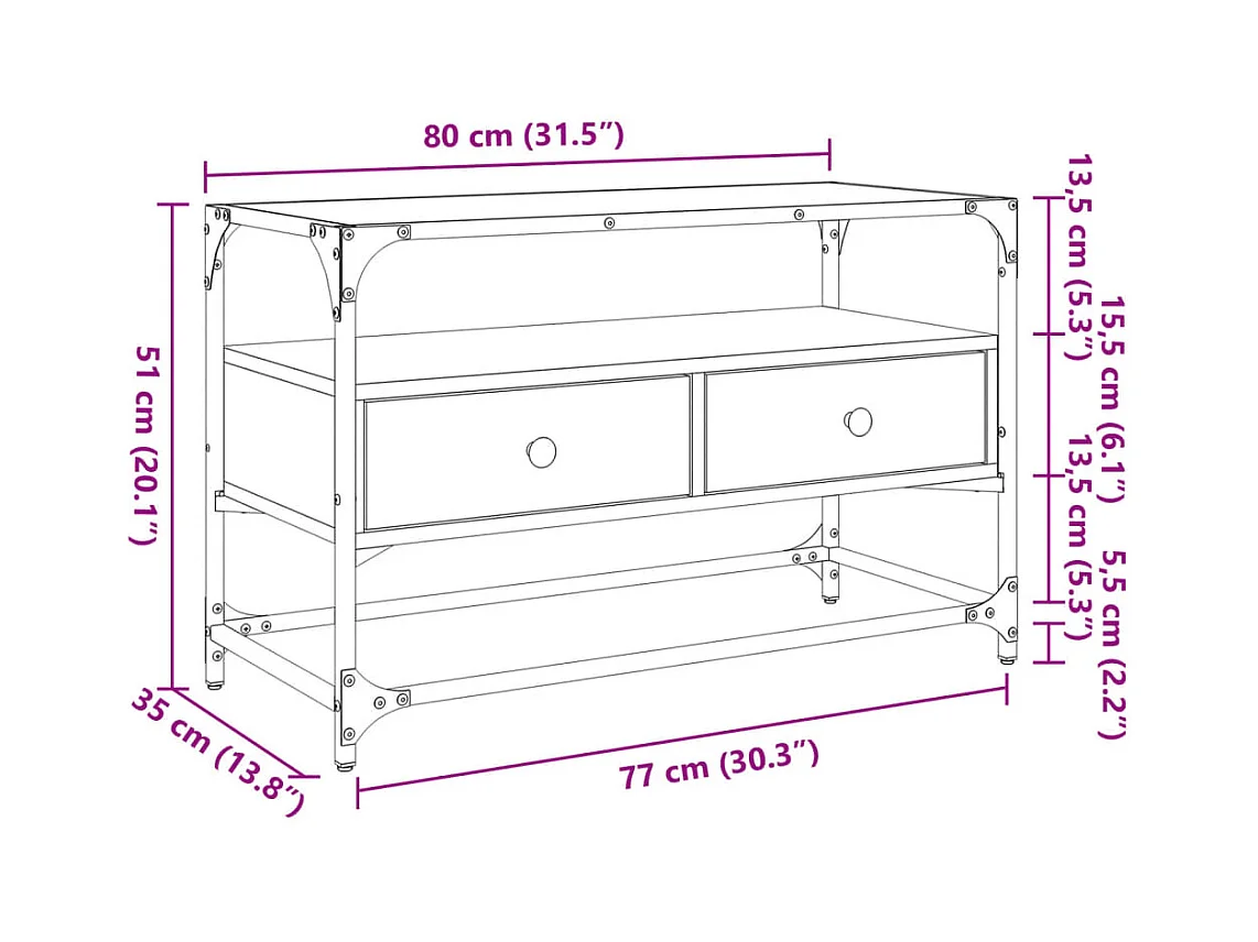 Meuble TV chêne fumé 80x35x40 cm bois d'ingénierie