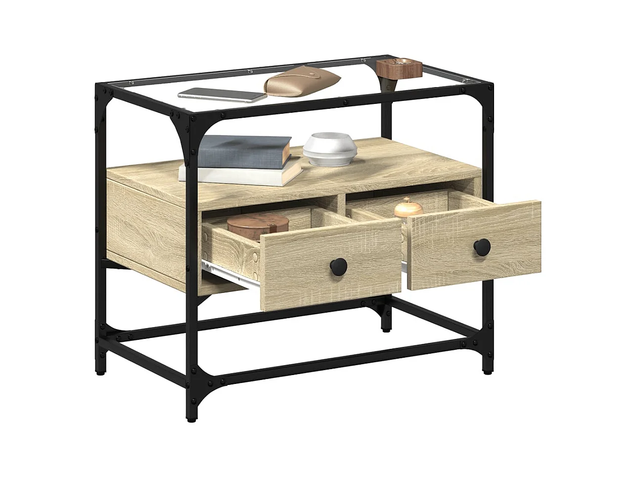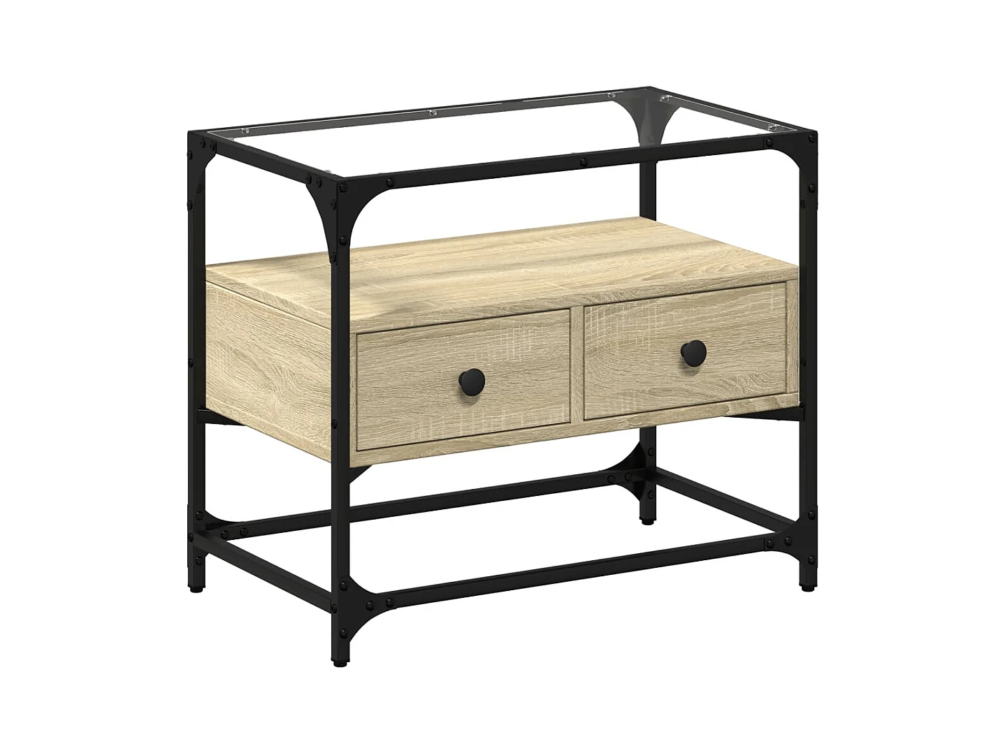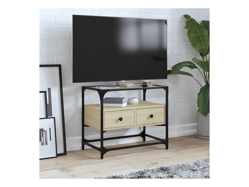 Meuble TV avec dessus en verre chêne sonoma bois d'ingénierie