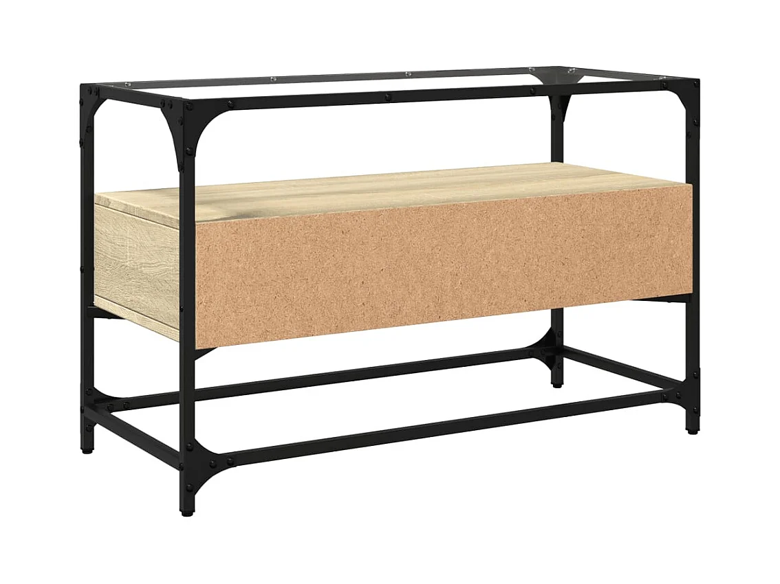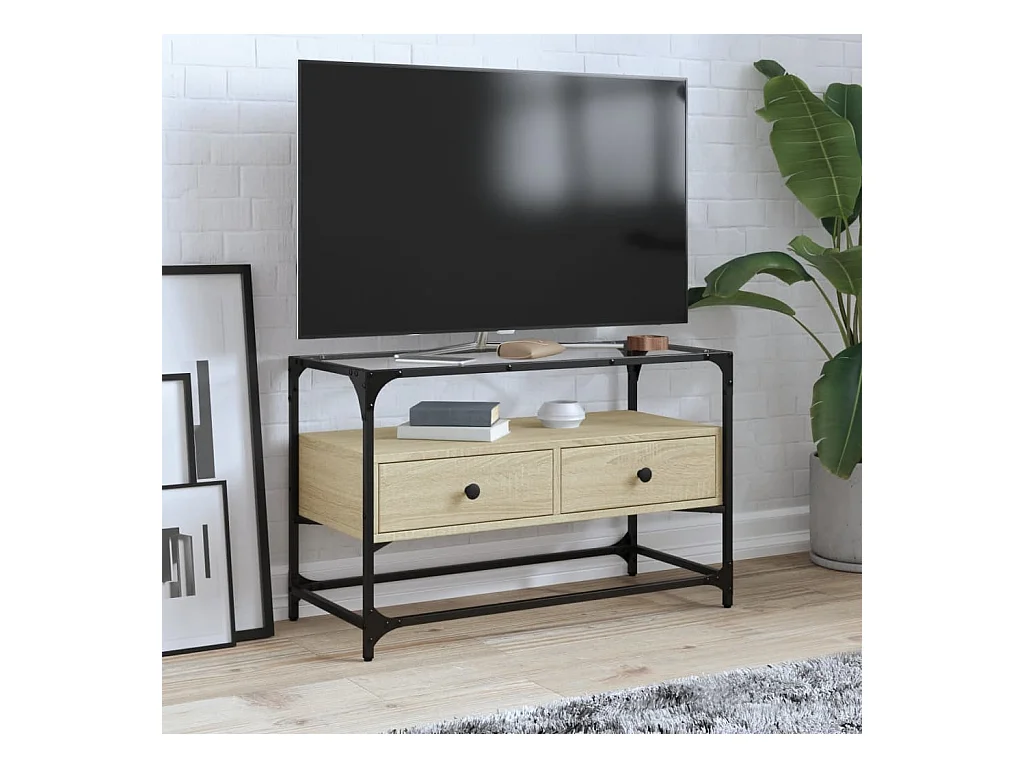 Meuble TV avec dessus en verre chêne sonoma bois d'ingénierie