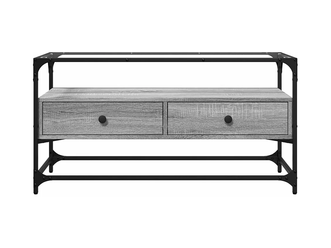 Meuble TV avec dessus en verre sonoma gris bois d'ingénierie