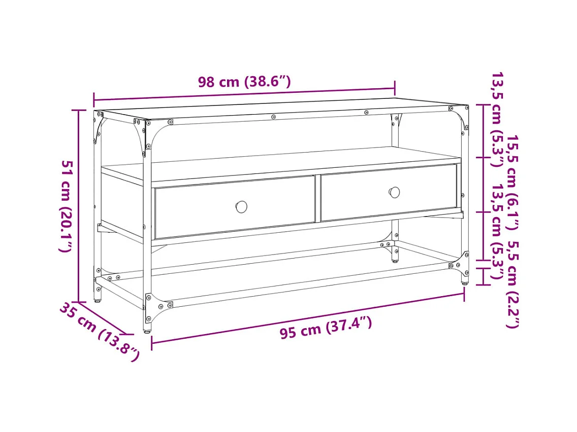 Meuble TV sonoma gris 100x35x45 cm bois d'ingénierie et fer