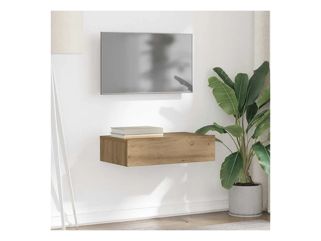 Meuble TV avec éclairages LED chêne artisanal 60x35x15,5 cm