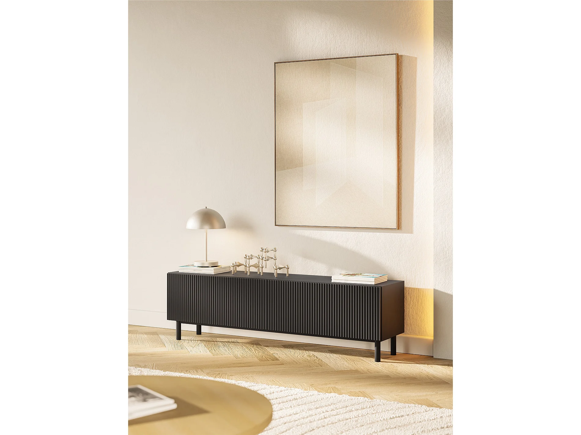 Meuble TV avec façade à rainures – 140 cm – noir – Veldio New
