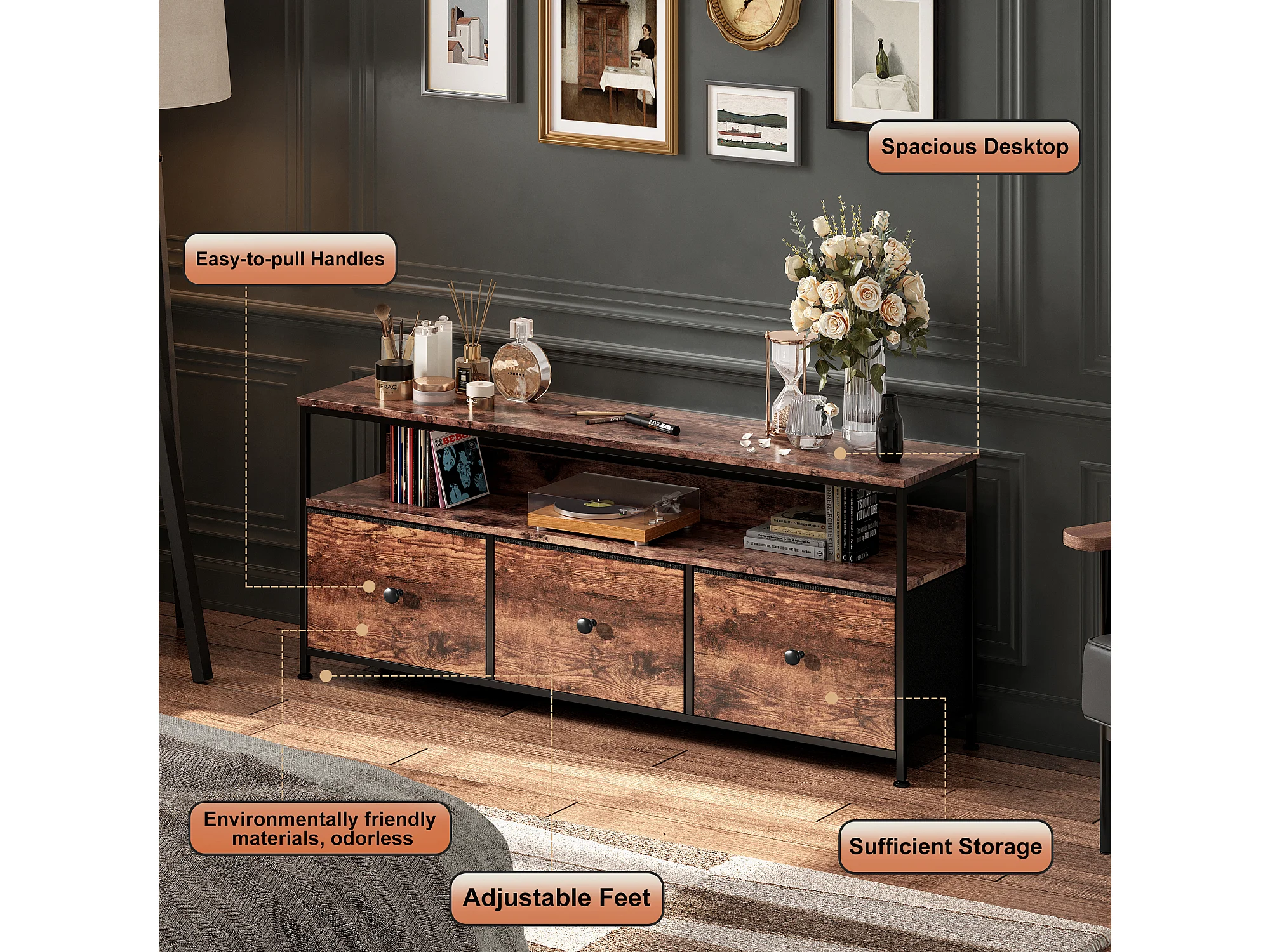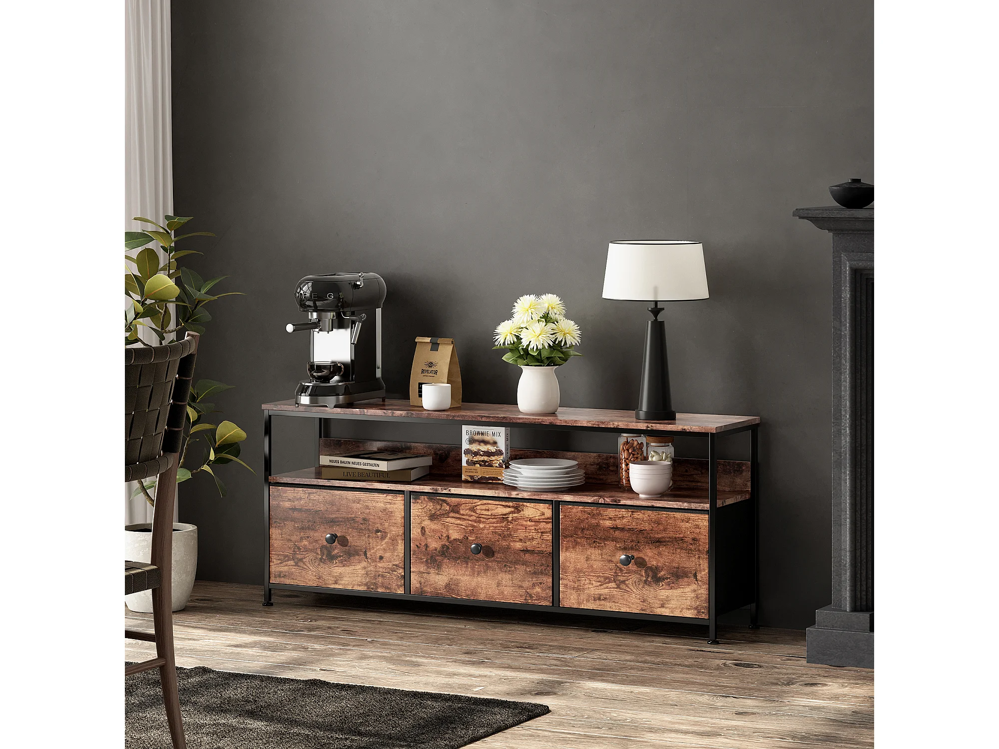 Meuble TV LED RGB – 3 Tiroirs Vintage, Structure Métal, Étagère Réglable, 108x30x57 cm