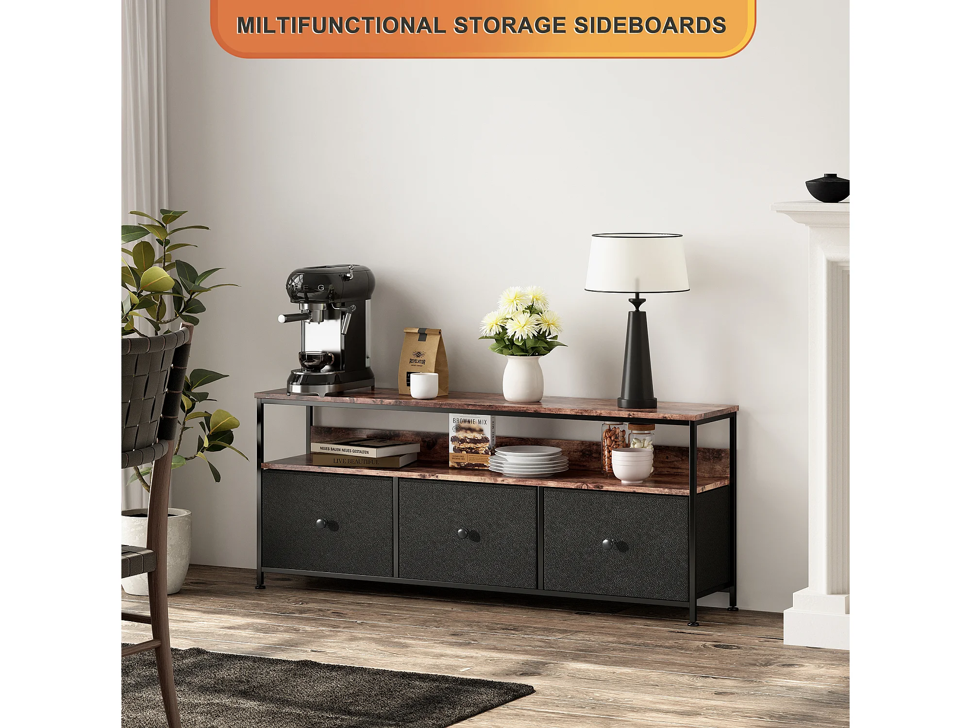 Meuble TV LED avec 3 Tiroirs, 137x30x57cm Banc TV Rétro Buffet, Noir