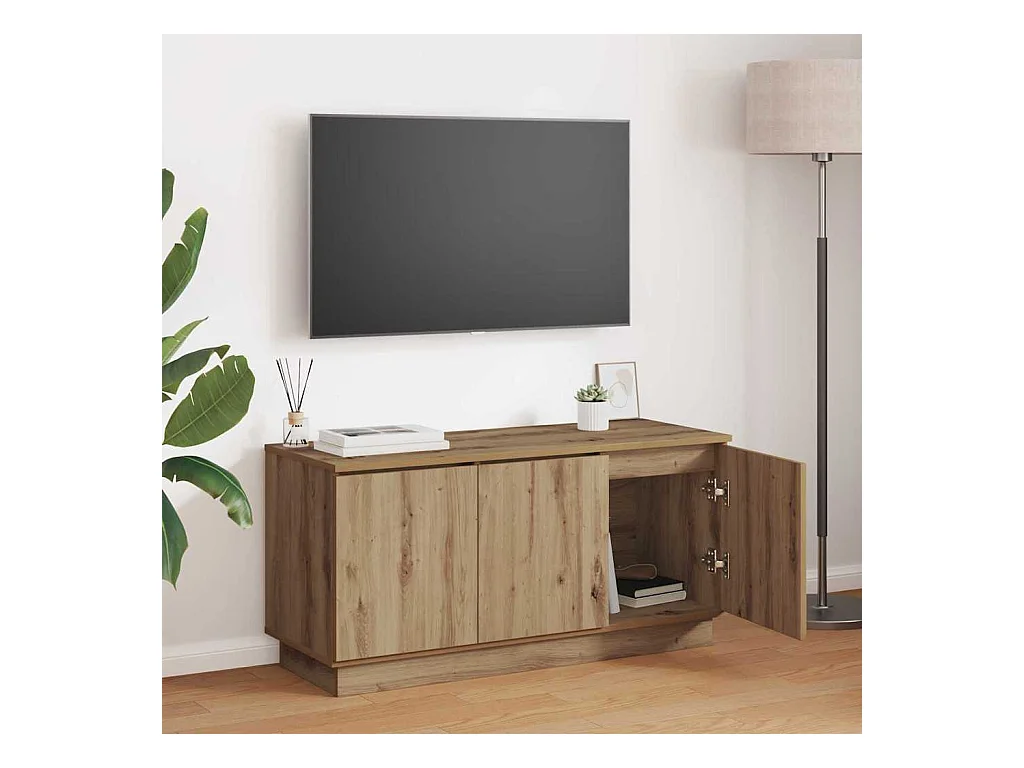 Meuble TV avec lumières LED Chêne Artisan 100x35x31 cm