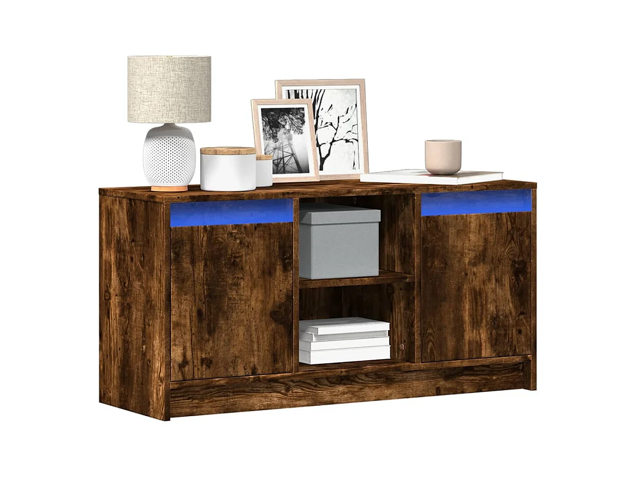 Meuble TV avec LED chêne fumé 100x34x50 cm bois d'ingénierie